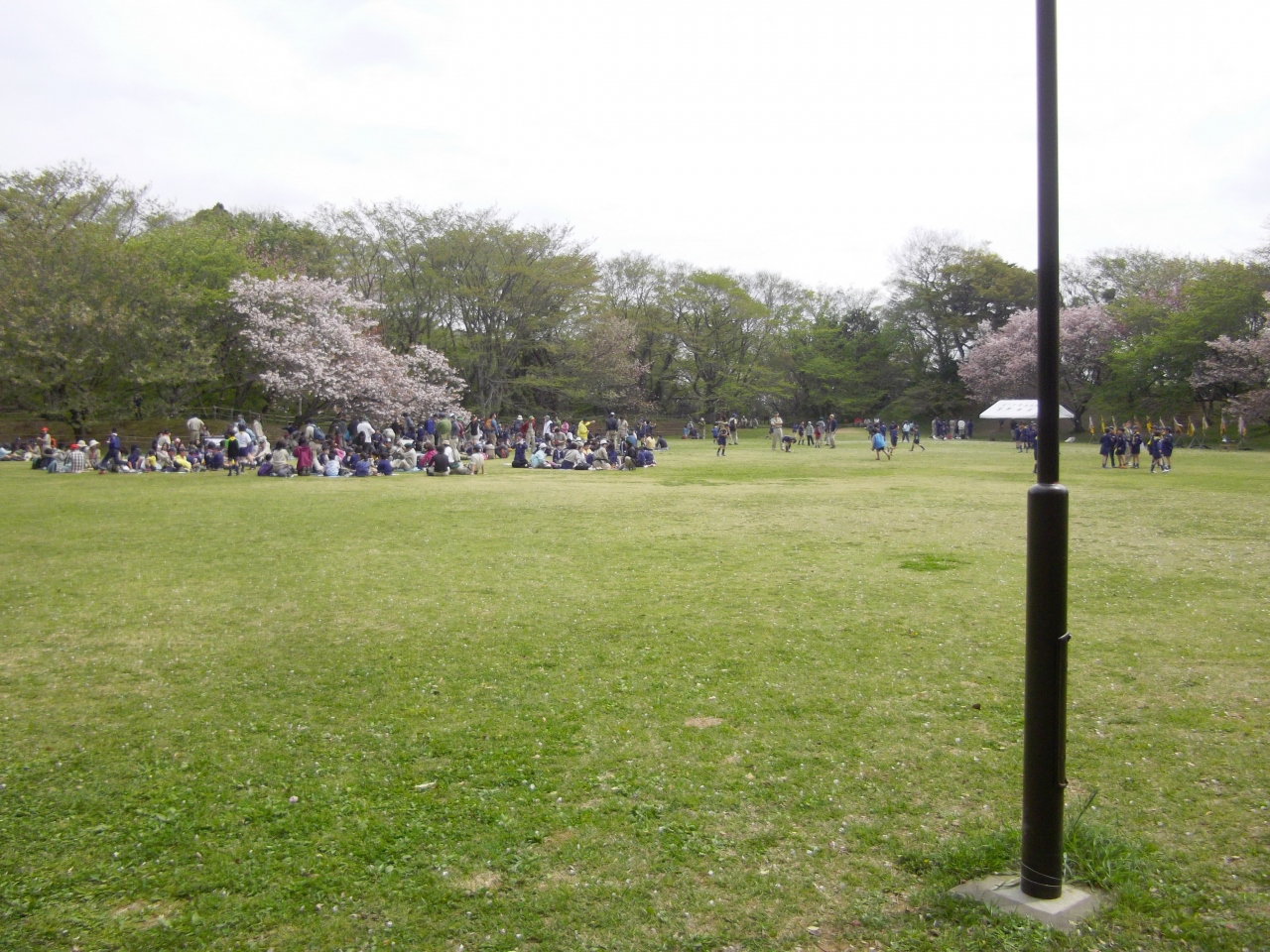 すでに桜の花は済んでいましたが、スポーツチームの少年たちや家族連れのピクニックで