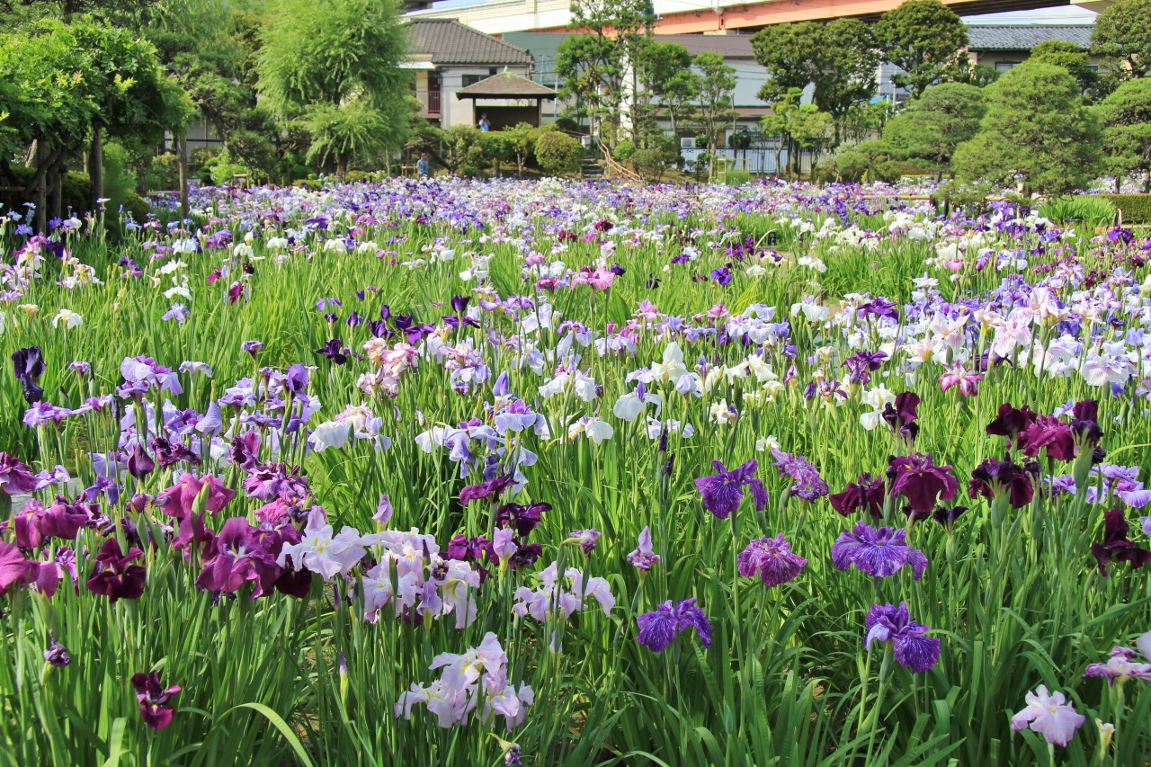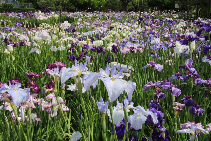 花菖蒲が見頃となったので行ってきました。堀切地区には堀切園以外に元祖小高園、武蔵園、吉野園、観花園がありましたが、度重なる水害などにより唯一堀切菖蒲園が残った様です。葛飾区のHPには7~8分咲きと案内されていましたが、1番花が萎れてしまい2番花が咲いている状態でした。見頃はあと1週間といった感じでした。こちらには約200種・6,000株の花菖蒲が植えられています。江戸系、肥後系など様々は色や形の花菖蒲を楽しむことが出来ます。菖蒲園の周りがマンションや首都高速道路で景観が損なわれているのが残念です。
