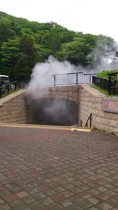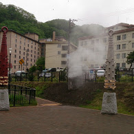 宿泊先のホテルの前にある公園で、朝の出発前にタイミングよく噴出しておりましたので行きました。公園自体は小さな公園で鬼金棒のオブジェが設置され、登別をアピールしていましたが、湯鬼神の金棒伝説を知らない人には不釣り合いな感じに映ると思います。温泉の噴出部分についてはしっかりとした柵とコンクリートの囲いで安全対策がなされていましたが、グォーと音おたてて噴出するお湯の量や熱気は凄くて、恐る恐る近づく感じになっちゃいました。自然エネルギーというか、地球のパワーというか、そんなことを実感できる施設です。