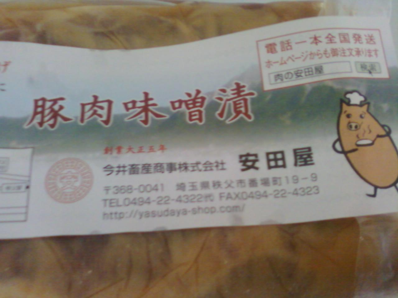 安田屋さんは埼玉県の秩父にある、豚肉のみそ漬けで有名なお店です。豚肉の味噌漬けのおみやげを買って帰りました。味噌漬けは豚肉を丁寧にガーゼで巻いてあって、その上から味噌を肉に染み込ませる感じでした。みそがお肉につきすぎず、上品な味付けの柔らかいお肉を楽しめます。
