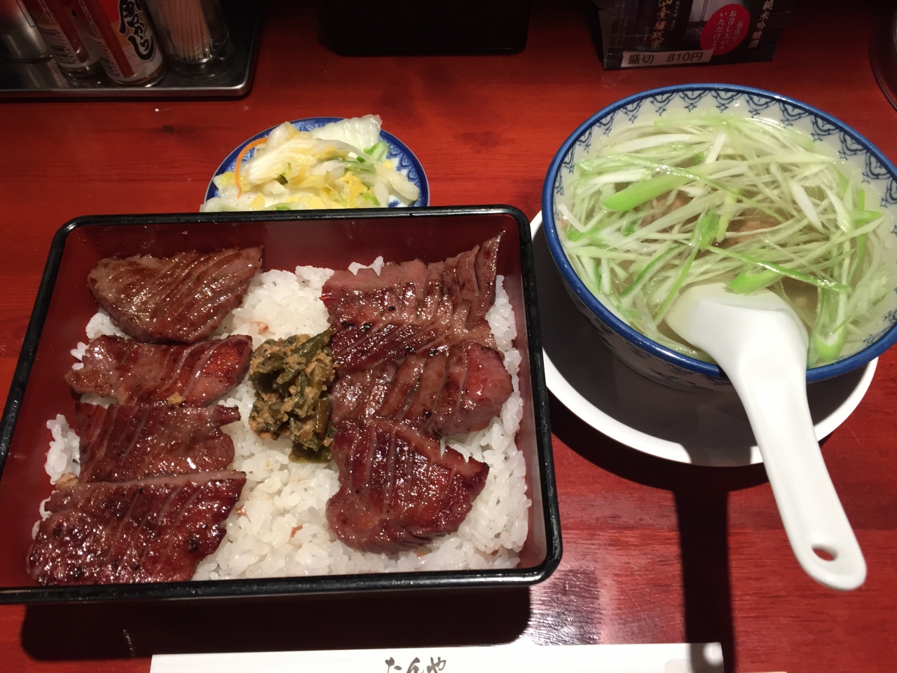 仙台出張の際に利用しました。仙台出張の〆に仙台駅の牛タン通りでラスト牛タンです。いつも利休や喜助なので今回はあえてたんや善治郎に入店。牛たん重を注文しました。少々濃いめに感じる味付けで、ご飯がススみます。塩加減が絶妙です。テールスープも絶品。ここでも充分満足できますね。