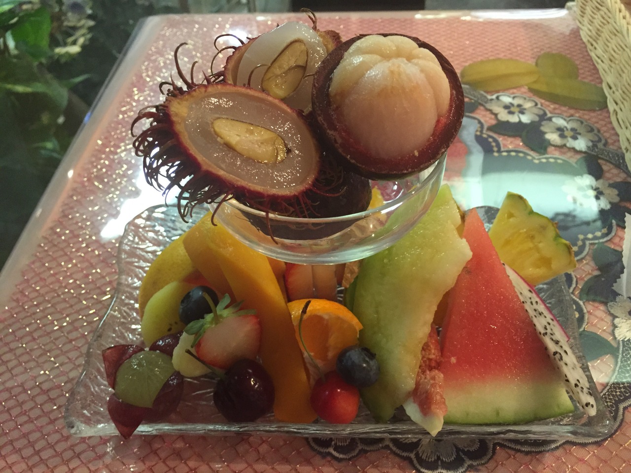 周りは美味しそうなフルーツパフェ。