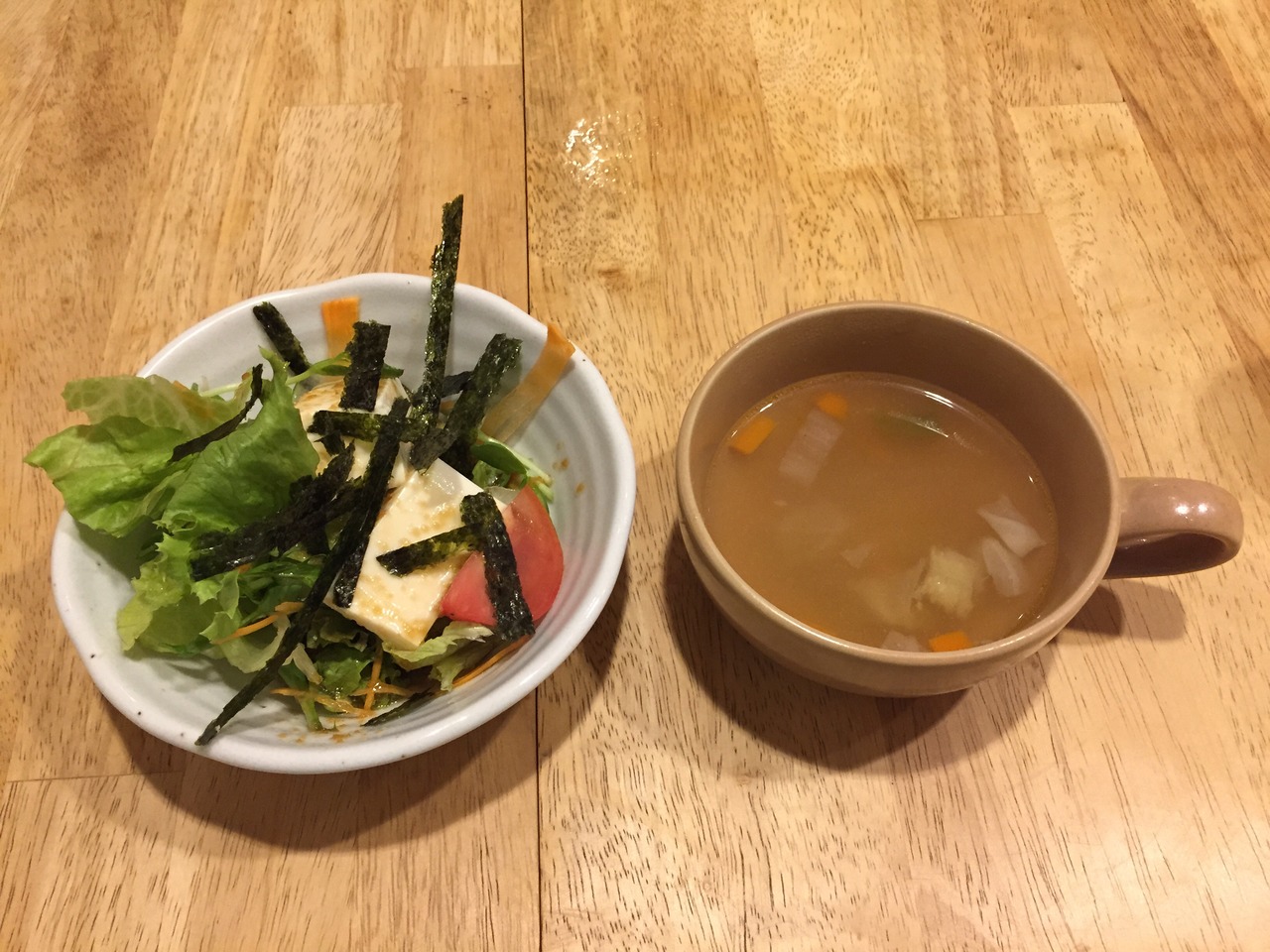 これに定食セット ご飯 スープ ミニサラダ 300円。