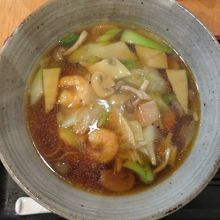 ランチ時に娘と行きました。ランチの時間帯よりは少し早かったのもあり、広めの席に案内してもらい、「海老と野菜のあんかけ麺」¥950を娘と一緒にいただきました。2歳の娘はハイチェアーや子供用のお皿など貸してもらい、店員さんは親切で、子連れでも快適にゆっくりお食事出来ました。中華料屋さんに行くと、いつも食べたくなる「五目麺」に一番近いメニューの「海老と野菜のあんかけ麺」をいただきましたが、醤油ベースの具沢山のあんがたっぷりかかっていて、美味しかったです。個人的には、もっととろみがあったらいなぁと感じました。冷やし中華なども気になったので、また行ってみたいと思います。