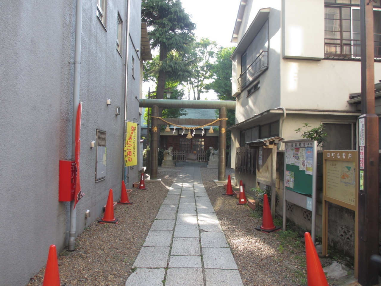 地元の方でないとわかりにくい場所にあります。小石川後楽園の北側を西に進んだところにある牛天神下交差点を、大通りをそのまま道なりに斜めに進み、右側を歩いて一つ目の路地を右折して、左折する道2本を通り越して直進すると、次の左側にある細い道が住宅の間にあるこの神社の参道です。その奥に本殿があります。住宅街の中の小さな神社です。地元の方がお参りしていたので、地元にはなくてはならない神社なのだなと思いました。