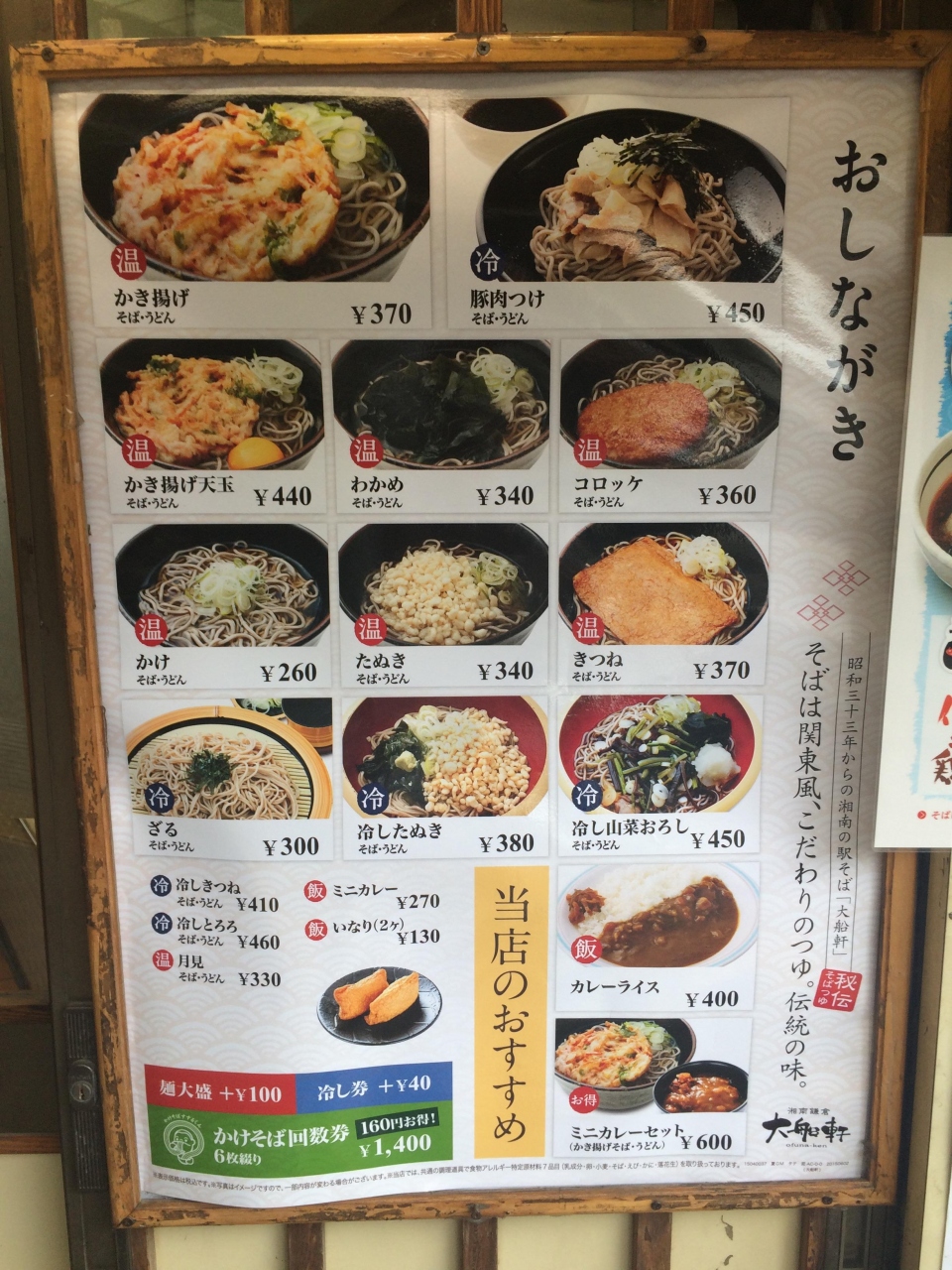 東海道線藤沢駅の階段下にある立食いそばの大船軒