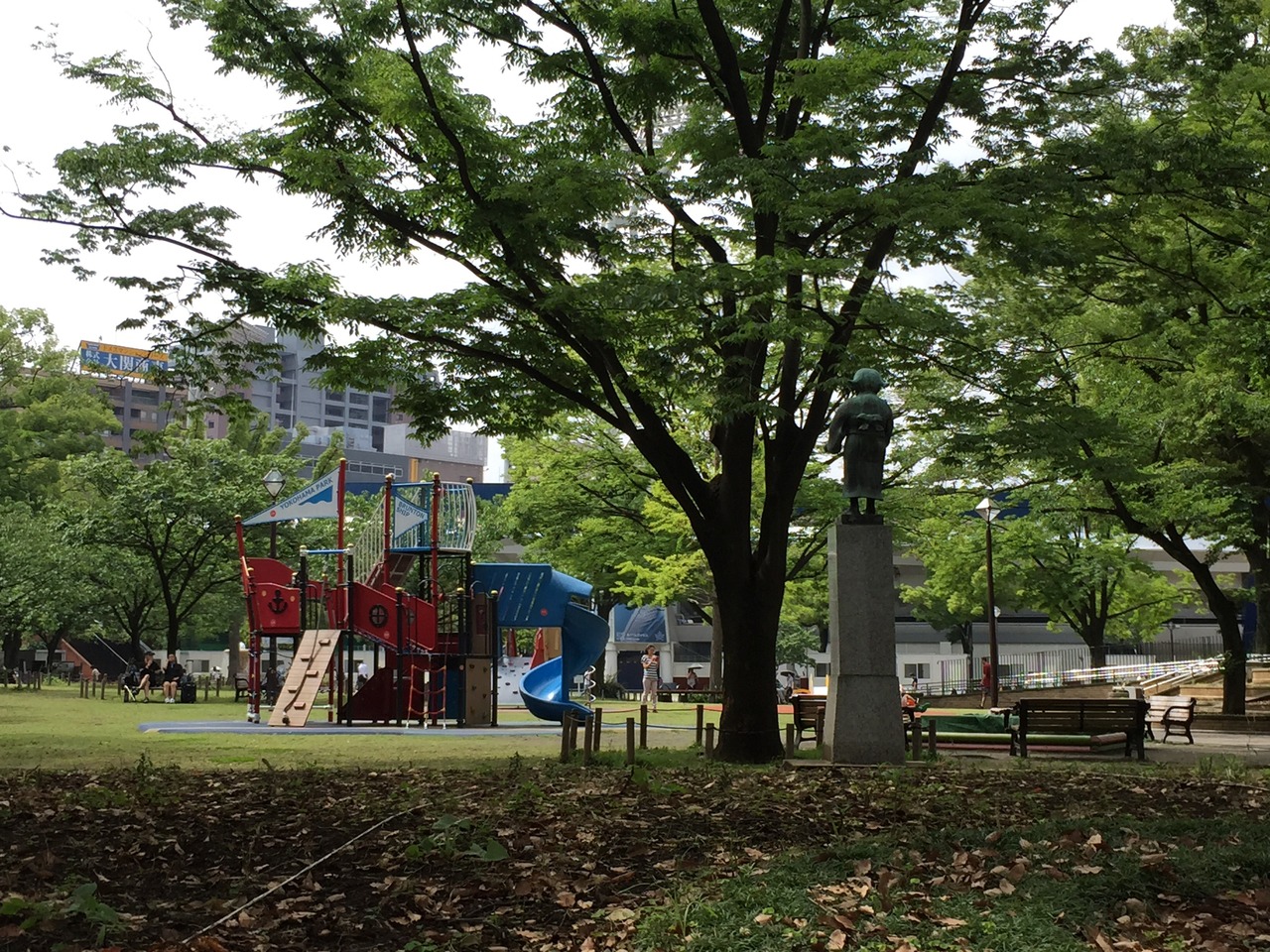 JR関内駅前の横浜市役所と道路を挟んで対面しています。山下公園に次いで古い西洋式公園で、日本人が使えた西洋式公園としては一番古いそうです。元は遊郭跡地だそうで、この横浜公園と日本大通りは一緒に整備されたそうです。2009年には近代化産業遺産として登録されました。