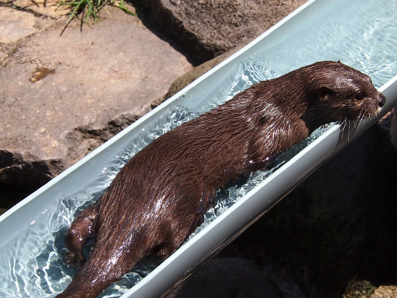 中でもカワウソは人気で、パイプの中を流れる流しカワウソを求めて多くの人が訪れますが、なかなか流れてくれないので、ひたすら待ちです。