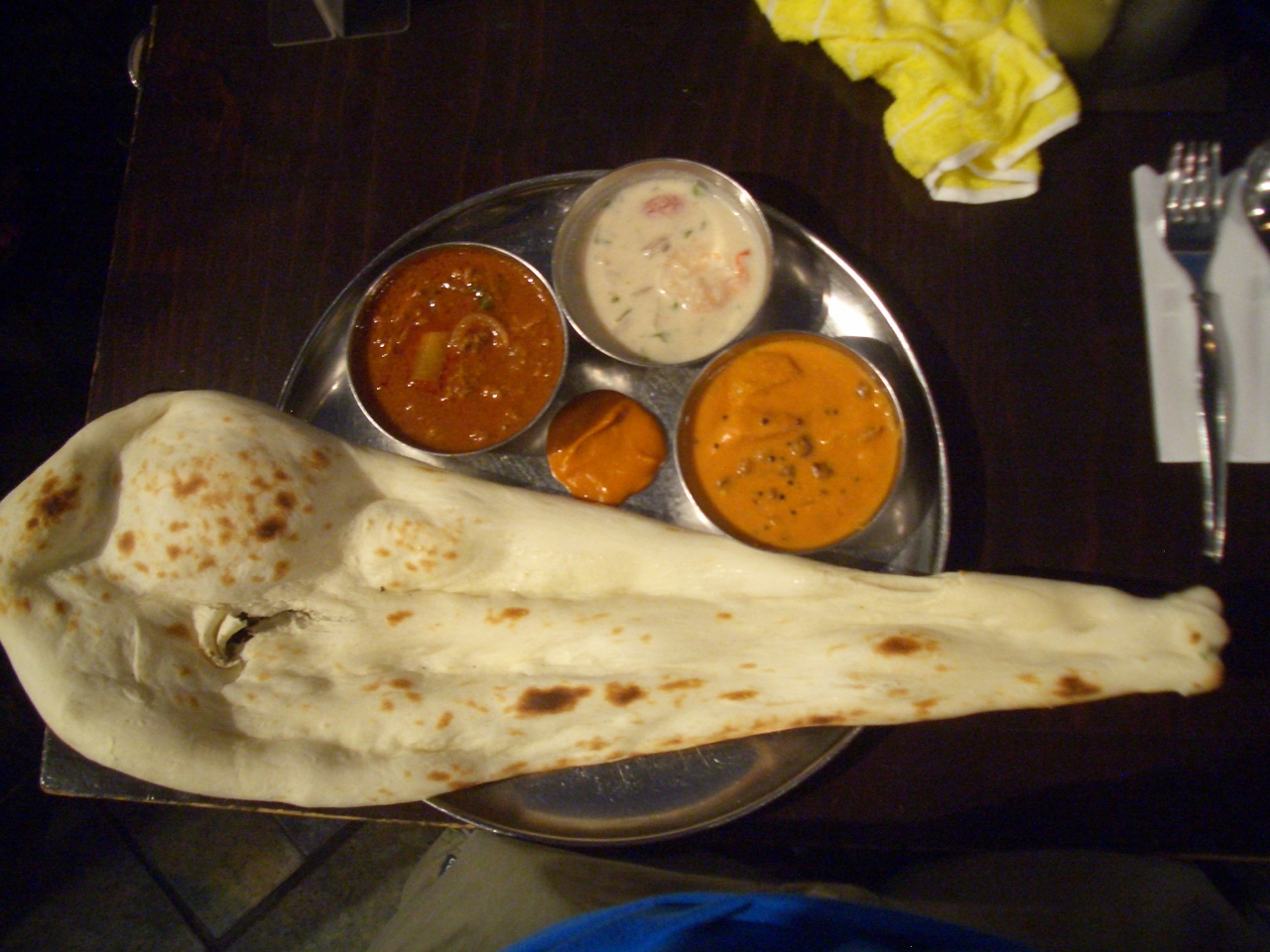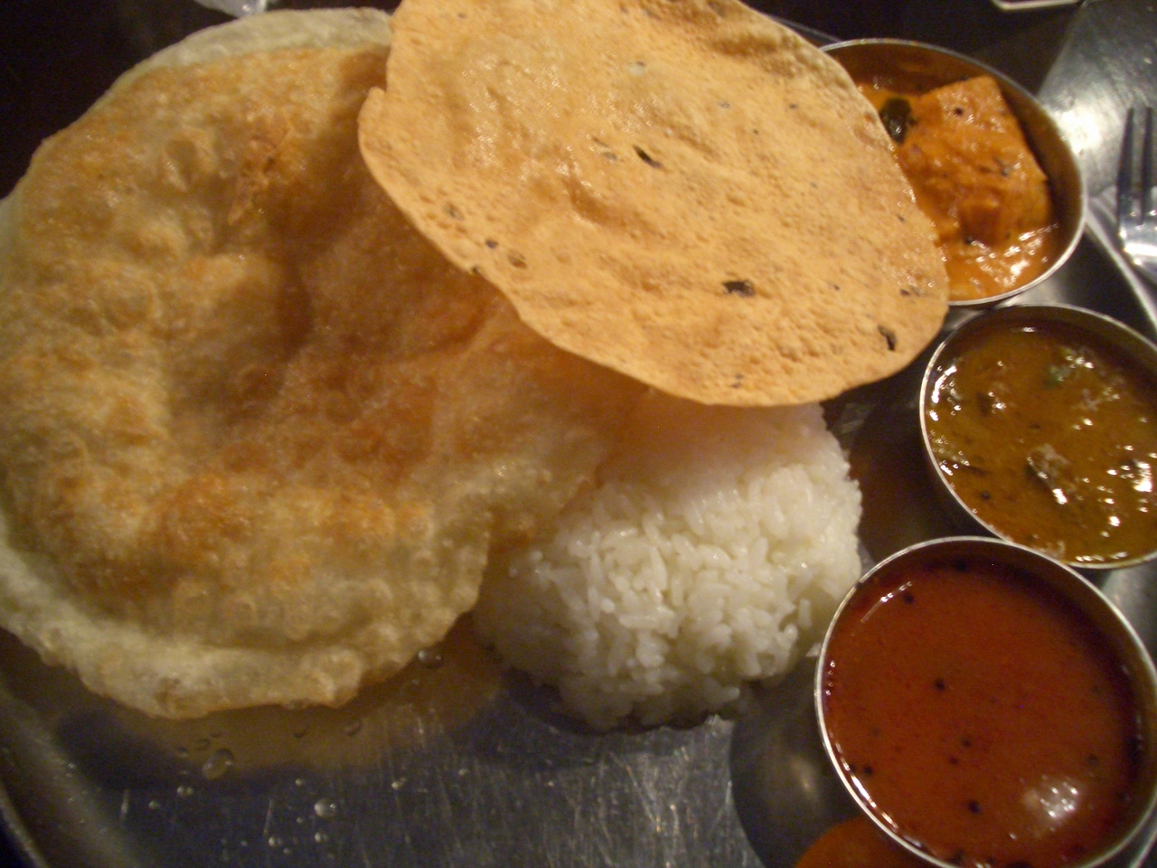 某サイトでものすごい高得点。期待が深まる。ミールスを注文。平日なので、ライスが日本米。それは良いんだけど、炊き方がベタッとしていて、カレーに合わない…。プーリーの油のせいだとは思うが、食後数時間ずっと胃もたれ。なんであんなに高得点なのか良くわからない…。