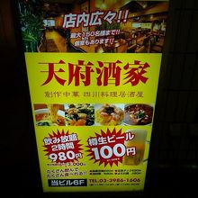 会社帰りに便利な中華料理店です。