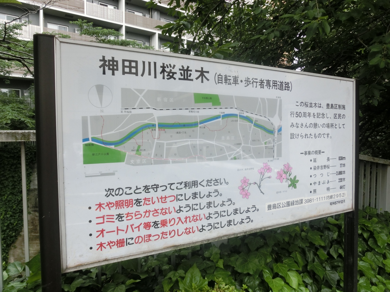 新目白通り、都電荒川線の早稲田駅から高田橋あたりまで、両側が神田川ウォークという遊歩道となっている。