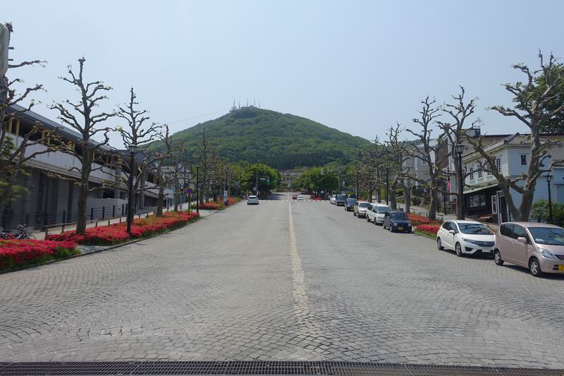 函館元町地区にある坂。道幅がぜいたく過ぎるくらい広く、路面も石畳になっていました。坂の周辺には相馬株式会社社屋、旧イギリス領事館、ペリー記念碑、元町公園、旧函館区公会堂など名所も多いので、観光客がよく訪れる坂の一つかと思います。正面に函館山も見えます。行った時はちょうどつつじがきれいに咲いていました。路面電車でアクセスする場合は、末広町電停より歩いて1分で坂の下に着きます。