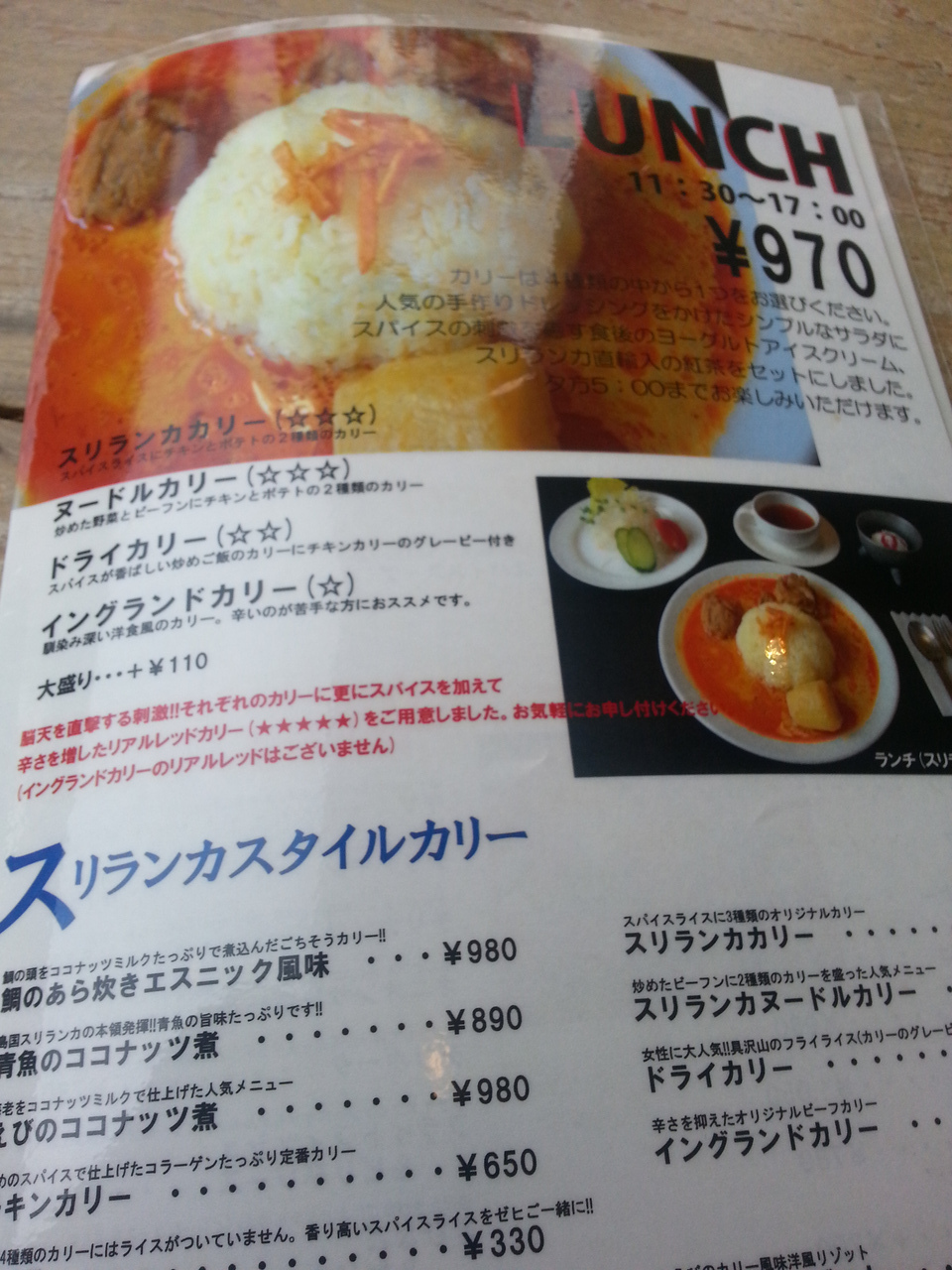 福岡で特に女性に人気のあるカレーということで行って参りました。特に目立った看板等もなく、土地勘もないので探すのに苦労しましたが、何とか到着。16時でしたがまだランチをやっているとのことなので、ランチのスリランカカレーをオーダー。出てきたのはじゃぶじゃぶのルーに鶏肉とジャガイモの至ってシンプルなカレー。一口食べるとココナッツミルクが入っているせいかタイのグリーンカレー、イェローカレーに似ています。ジワジワと辛さが込み上げてきて、汗だくになりながら何とか完食。美味しかった。病みつきになりそうです。