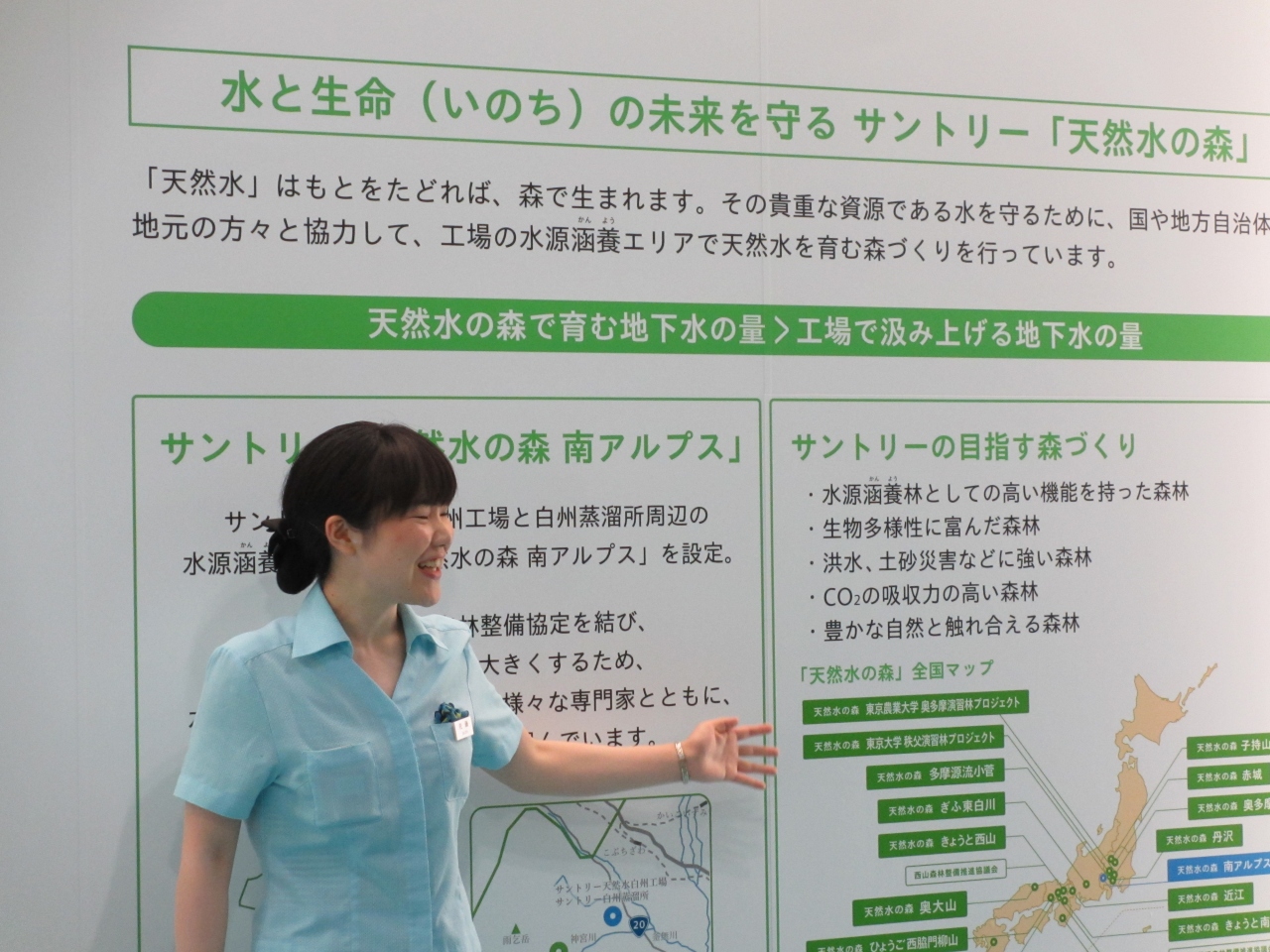 広大な敷地に白州蒸留所、ウイスキー博物館、バードサンクチュアリがあります。駐車場から少し行ったところで見学を申し込みます。受付が済むと30分ごとにバスに乗って、30分から1時間の見学ツアーに案内してくれます。大麦に触れたり、木桶発酵槽を覗いたり、迫力ある樽の修理作業を見たり、気化したアルコールに酔ったり、工夫された見学コースになっています。見学の最後にはウイスキーや蒸留飲料水、ジュースなどの試飲があります。帰りにはちょっとしたお土産ももらえます。近くにある道の駅などにはさらにお土産が貰えるクーポン付パンフレットがあります。ぜひ見つけて持っていくことをお薦めします。有料のお土産品も充実しています。レストランもあります。小淵沢ICから15分ほどのところにあります。