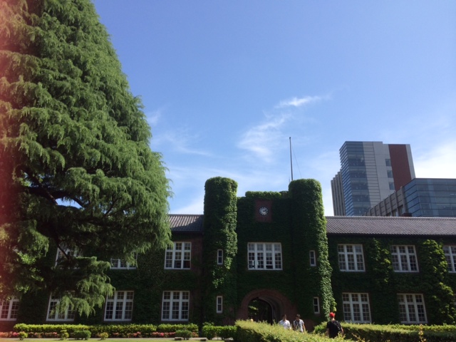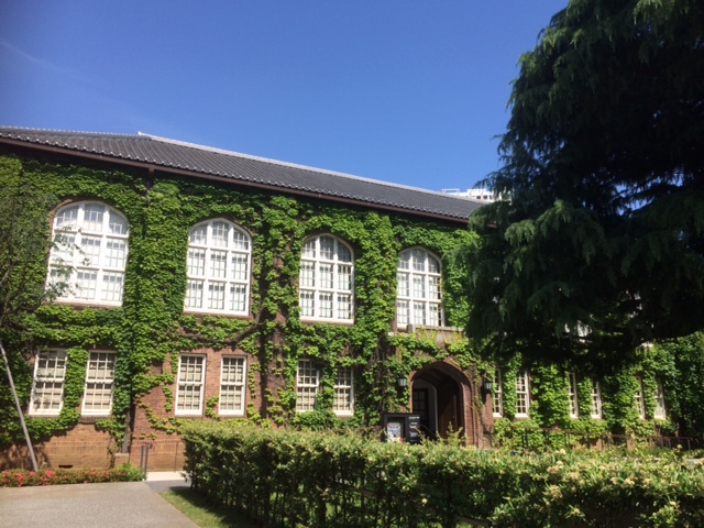 池袋駅西口の喧騒を抜けた先に、緑豊かな公園のような敷地のキャンパスが広がっていて驚きました。池袋という場所や、OBの有名野球選手のイメージとは全く異なる雰囲気でした。蔦が絡まるレンガ造りの 建物がいくつもあり、新しい建物もレンガ調の外観で、統一感が保たれていました。美しい芝生広場のベンチも居心地良かったです。