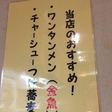 店名にある金魚は中華そばに浮かぶワンタンのことを指しているとのことで、ワンタン麺はこの店の名物とのことで、もう一つの人気メニューであるつけ麺と人気を二分しています。
