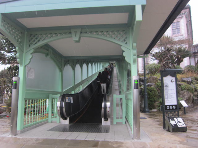グラバー園に行くとき坂を徒歩で歩かなくてもよい様にエスカレーターがあります。屋根もついているので雨の日も大丈夫です。落下防止など安全面での配慮のためか壁面も透明プラスティック製の壁があります。らくらくなので景色を楽しみながら坂の上までいけます。