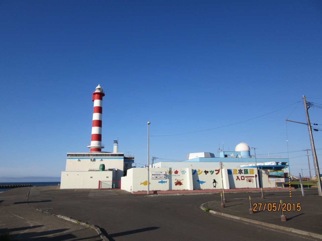 岬のバス停から徒歩約10分でイルカのモニュメントのある公園に出る。近くには【水族館】や土産物店・食堂があったが、あいにく16時過ぎに行ったので全てクローズしていた。海鳥が飛んで趣ある岬で、景色は最高であったが、風が冷たくて長居は出来ず、写真を撮って稚内に戻った。岬から利尻富士の絶景は必見である。