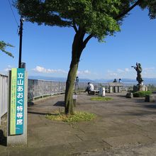 山上にある展望台に立てば、富山市街地の背後に立山が大きく聳えている様が一望できて見事です。展望台前の駐車場は区画数が少ないので満車の場合は少し離れたところにある駐車場も利用できます。訪れた時は大きなカメラを構えた鉄道ファンが北陸新幹線を撮影していました。