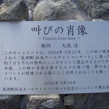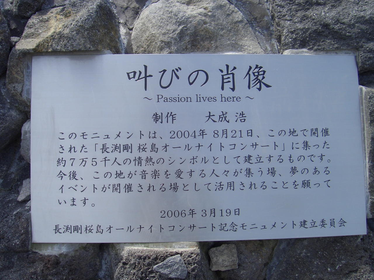 2004年8月21日に行われた長渕剛のオールナイトコンサートの跡地に作られたモニュメントです。
