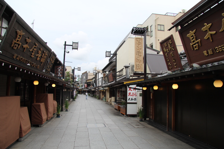老舗の食事処や土産物店が軒を連ねる映画のセットの様な通り