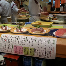 お昼時には列をなす話題の回転寿司。並んでいると隣の福岡在住の奥様方が絶賛していたのが印象的でした。事前学習していたので着席するとすぐに活アワビ軍艦、あなご、あとお店オススメのカニクリームコロッケをオーダー。どれも美味しくいただきました。