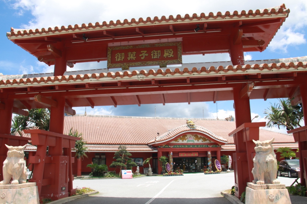 紅芋タルトで有名なお菓子のポルシェが運営する御菓子御殿、その恩納店は読谷本店よりも派手です。