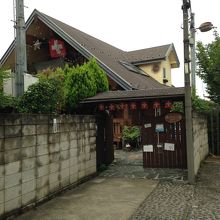 谷中の住宅街にあるログハウス風レストラン。古い谷中の街並みにあってよく目立ちます。