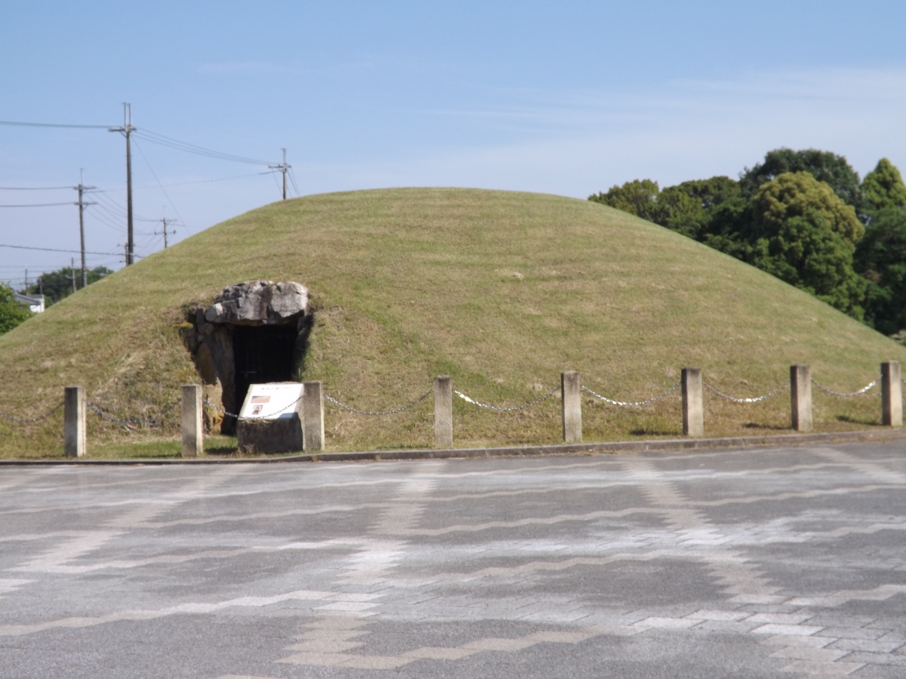 播磨国風土記に書かれている根日女伝説(ねひめでんせつ)のある古墳です。たくさん古墳があり、古墳公園として整備されています。かなりの広さがあり、市民の憩いの広場といった感じです。今日は、20人くらいの人がヨガをやっていました。散歩をしたり、遊んでいる子供もいて賑やかです。最大の古墳は玉丘古墳です。これ以外にも愛染古墳・クワンス塚古墳など6つくらいの古墳があります。ここは、立派な古墳公園です。