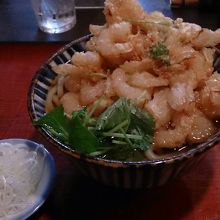 衣がいっぱいのかき揚げではなく、プリプリのえびやいかなどたっぷりのかき揚げ。