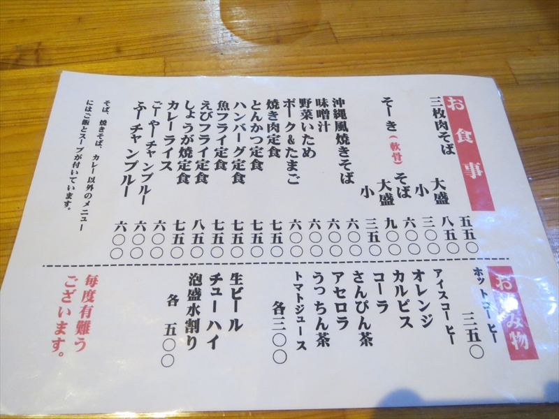 久米島西部地区,琉球銀行久米島支店の斜め向かい側にある食堂.地元のお客さんも多く,非常にコストパフォーマンスの高い食堂でした.訪れたのはランチタイムでしたが,夜も同じようなメニューでやっているとのことでしたので,機会があれば今度は夜に訪れてみたいと思いました.お薦めはソーキそばで,特にソーキの柔らかさは絶品でした.