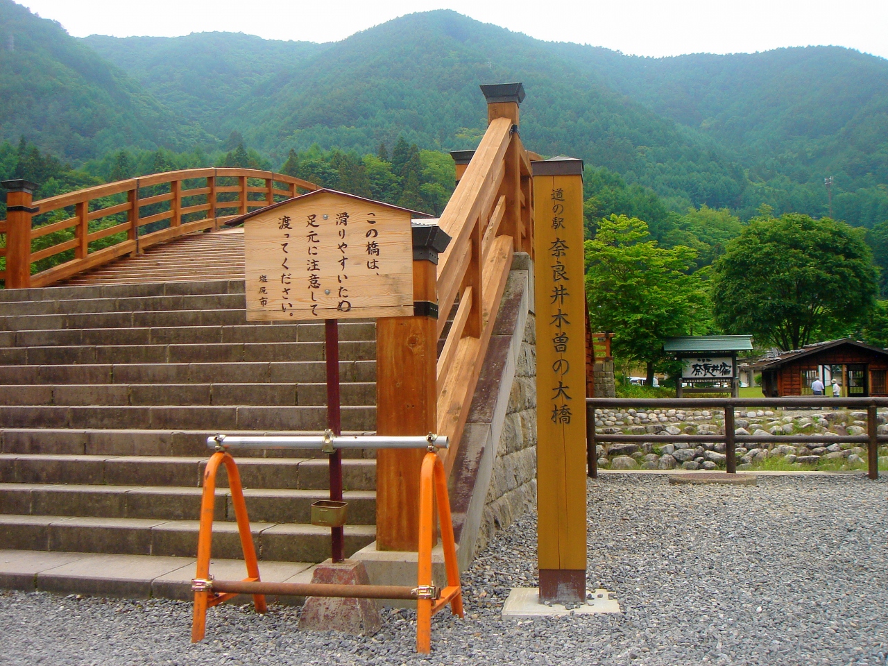木曽の大橋というので木曽川にかかる橋かと思ったら、奈良井川に架かる橋でした。でも、橋はとてもきれいで、素晴らしいです。道の駅なのに、何も販売していません。何か買うのではく橋を見に来てほしいです。一見の価値あり!