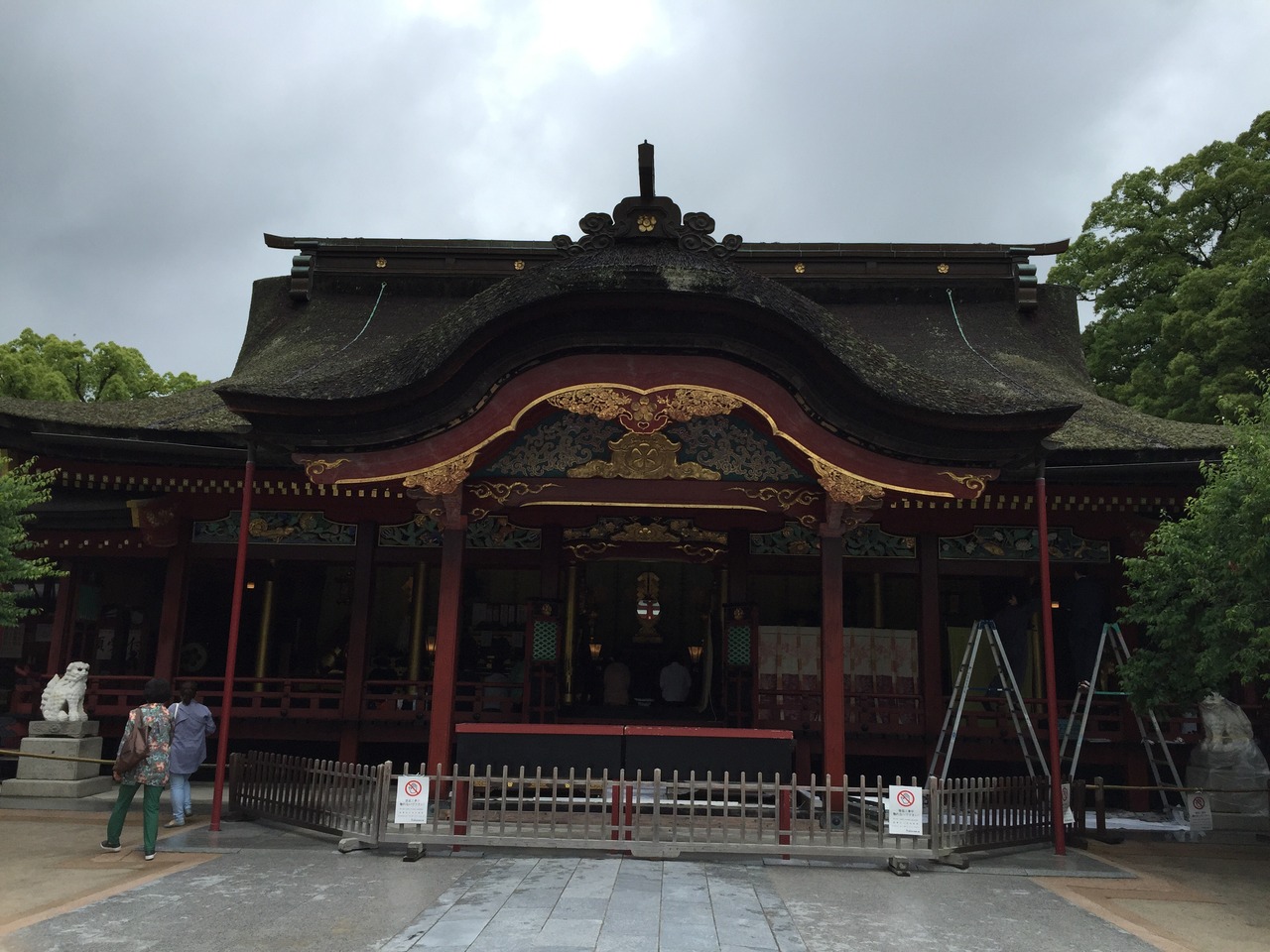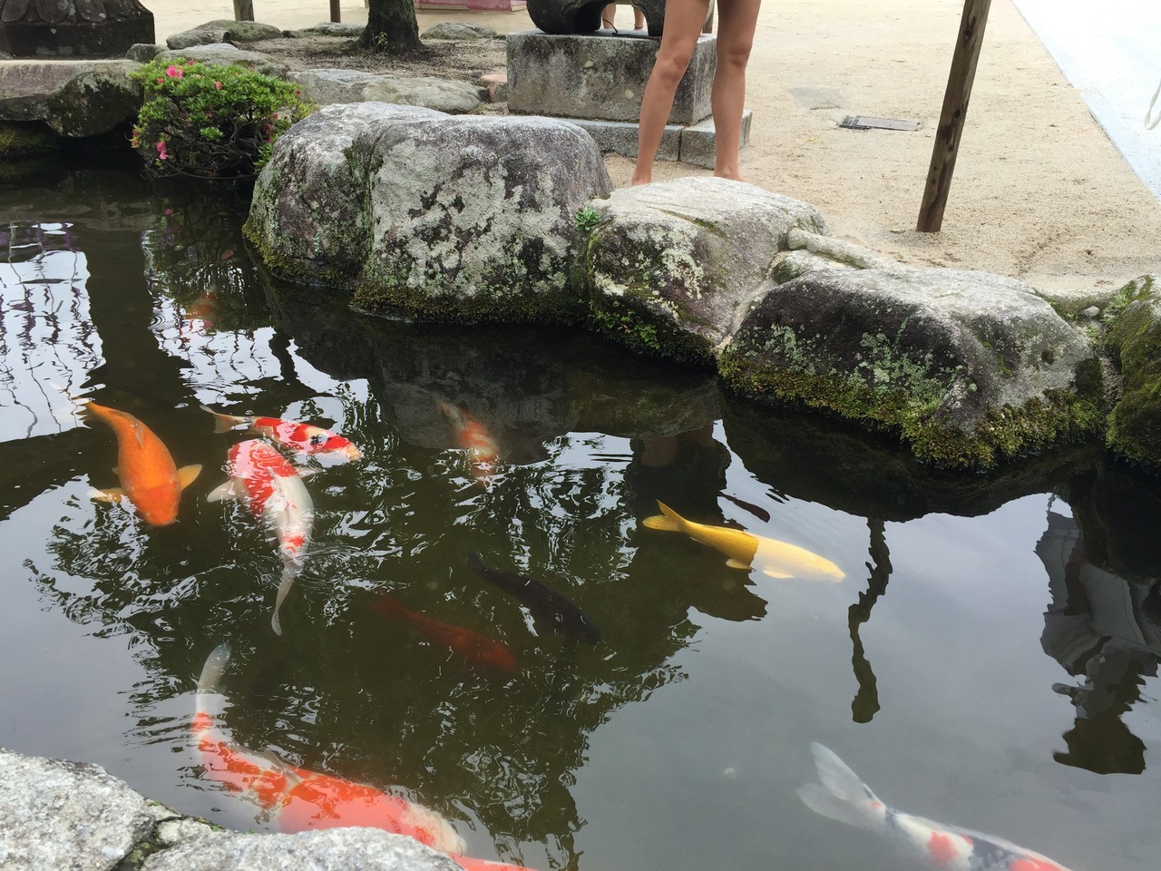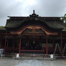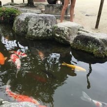 境内は思ったよりこじんまりした印象を受けましたが、お店が並ぶ参道、太鼓橋に重厚な楼門、本殿の他にも黄金の鯉がいる池や飛び梅など見所は多いです。