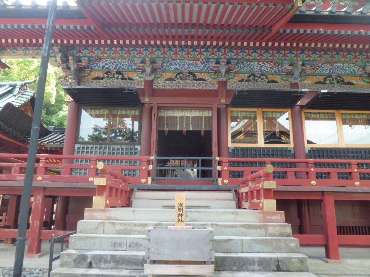 静岡駅からはちょっと離れているので、バスに乗りました(帰りは浪漫バスがおすすめです)。境内には7の神社があり、その中でも浅間神社と神部神社が一つの建物(二社同殿)で、左が浅間神社、右が神部神社となっています。本殿には見事な彫刻が施されています。また、麓山神社は100段以上の階段を登ったところにあり、登る途中には賎機山古墳があります。境内をゆっくりと巡りましょう。