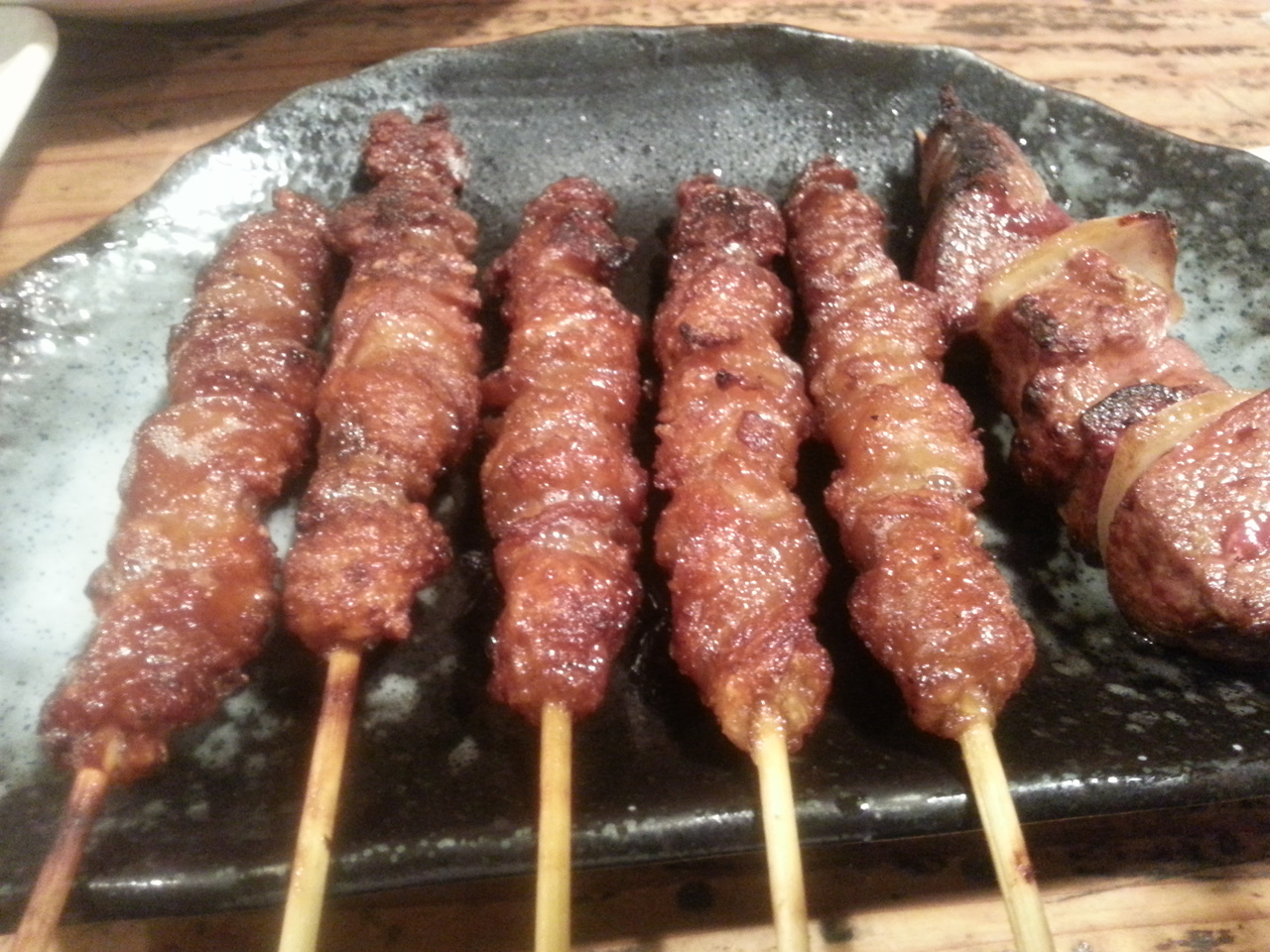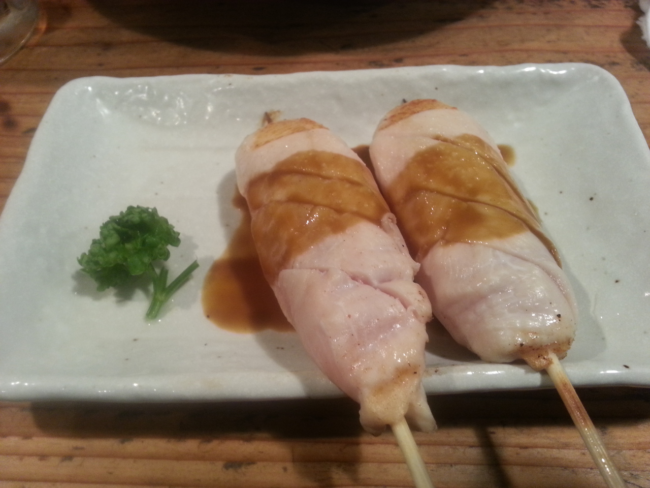 焼鳥のかわが旨い、かわがウリという珍しいお店なので気になっておりました。予約入れてなかったのですがすんなりと入店。早速かわを頼むことに。一般的な焼鳥のかわと違い、クニュクニュとした歯触りはなく、タレで重ね焼きをしているせいか、鳥の脂が落とされ、かりっとしており、いくらでも食べれそうです。常連客そうな人のオーダーを聞いているとそこに"しぎやき"といる名が・・早速オーダー。出てきたのは"つくね?"を表面だけ炙り、半レアの状態ででてきたもの。これもおいしい!色々頼みましたが、最後に鳥スープがでてくるのもいいですね。