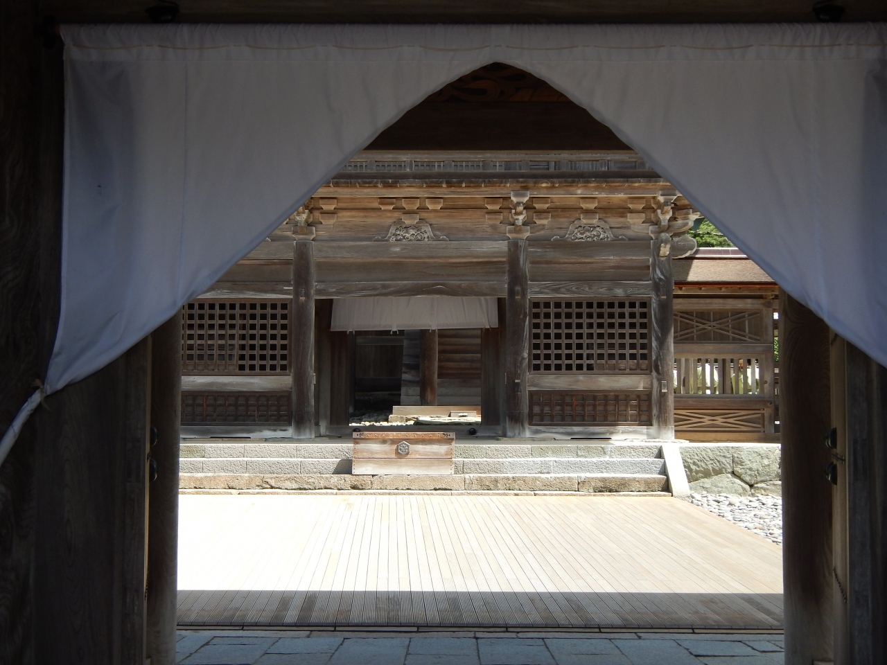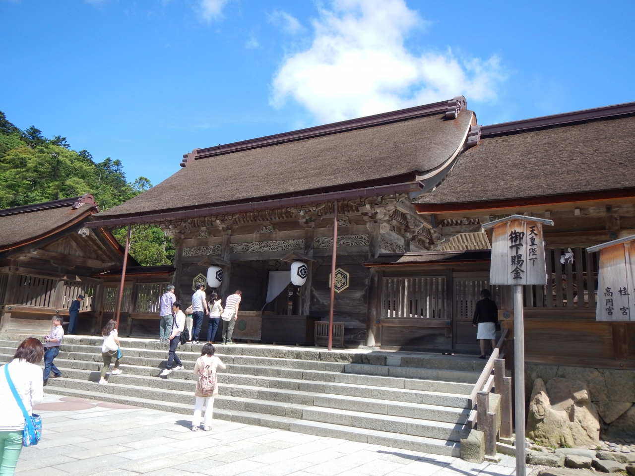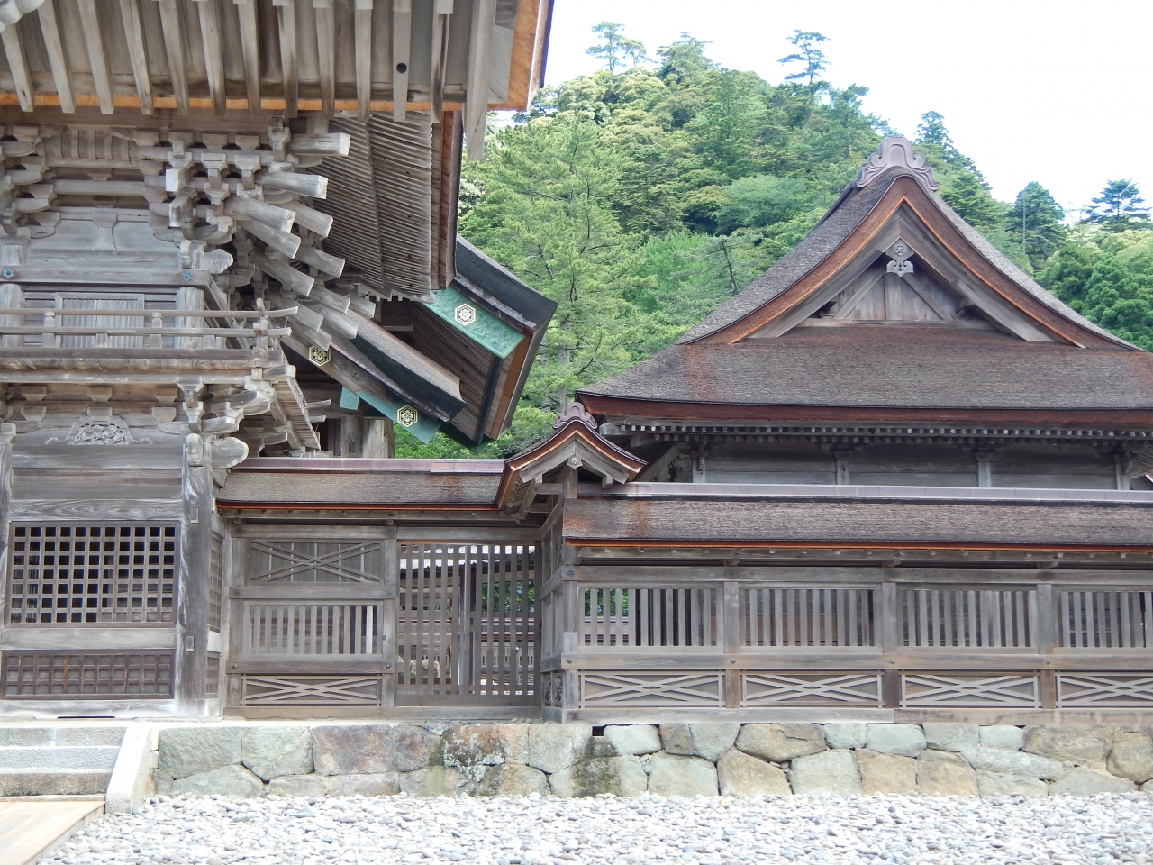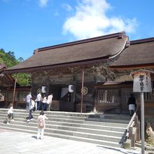 大勢の観光客が参拝しているところからは、国宝の本殿は見えません。横からずっと1周まわらないと、本殿は見る事ができません。