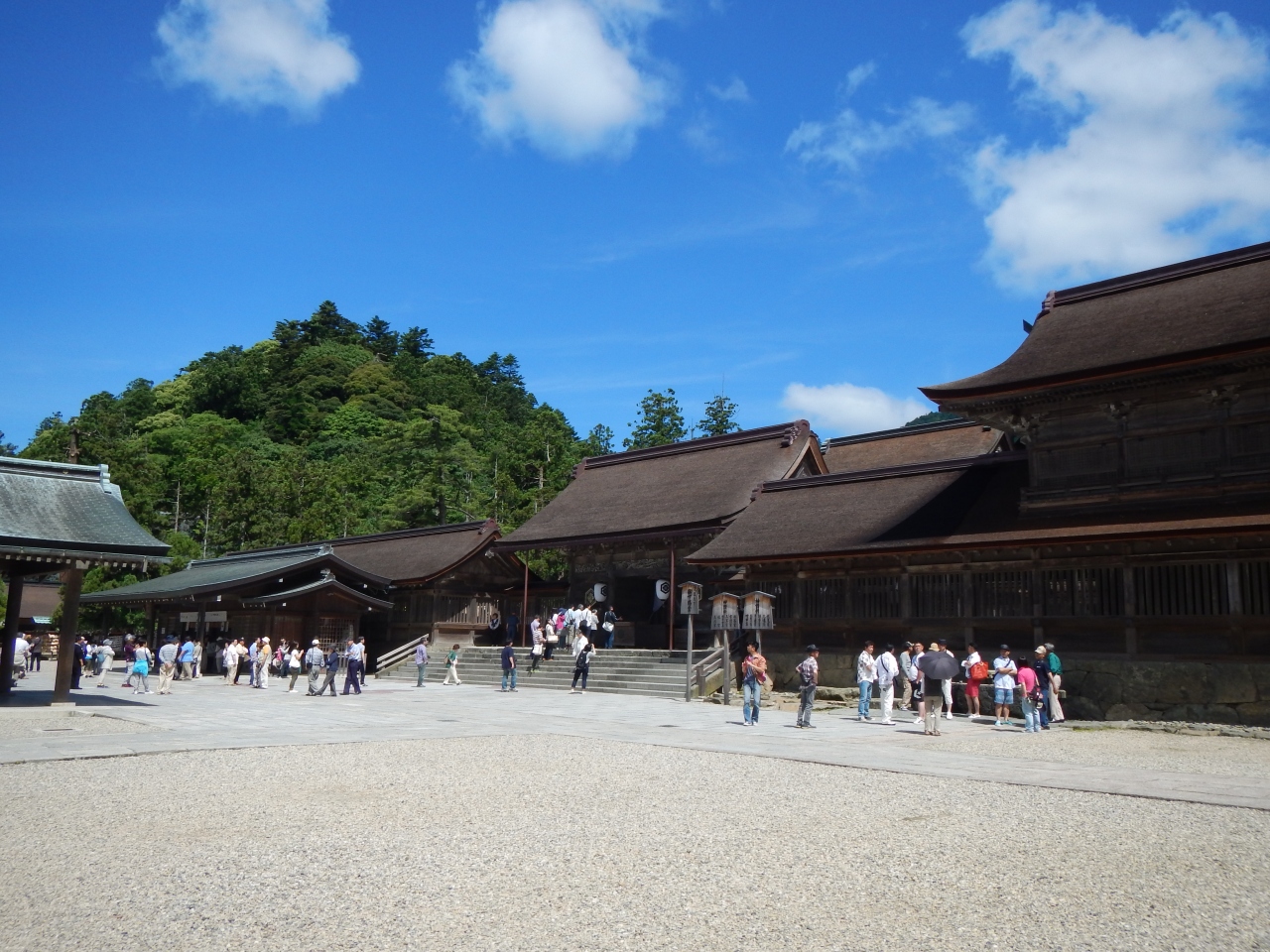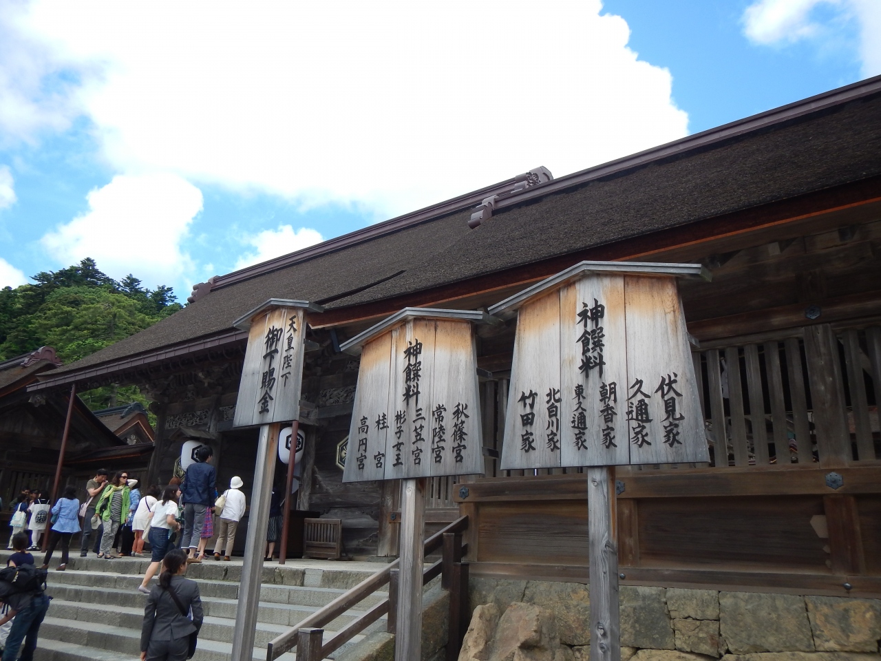 2015年6月大勢の観光客が参拝しているところからは、国宝の本殿は見えません。横からずっと1周まわらないと、ここまで来た意味がありません。