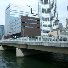 現在の橋は1929年(昭和4年)に完成したもので、その後、拡幅工事や改装工事がおこなわれていて、現在は、アルミ製の高欄やタイル舗装の歩道など外観は新しい感じで特別な印象を受けるような橋ではありません。川辺に高層ビルが林立する橋から観る周辺の風景は、水都・大阪を感じるものです。