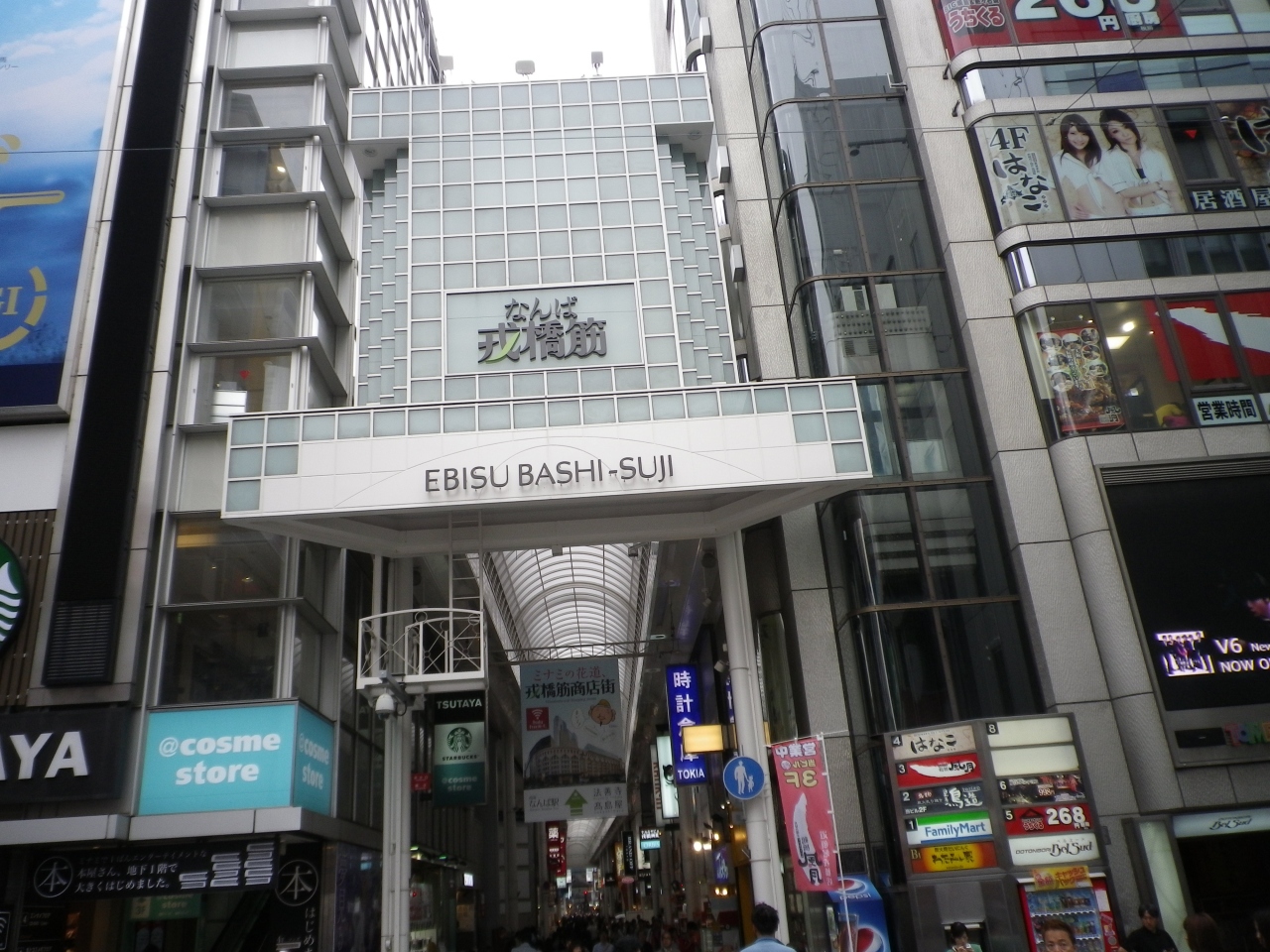 心斎橋を過ぎてグリコの看板で有名な戎橋を超えると戎橋筋商店街となります。もっとも当たり前ですが、急に何かが変わるわけでも連続した商店街として認識されているのでは野でしょうか。この商店街を抜けると難波となります。
