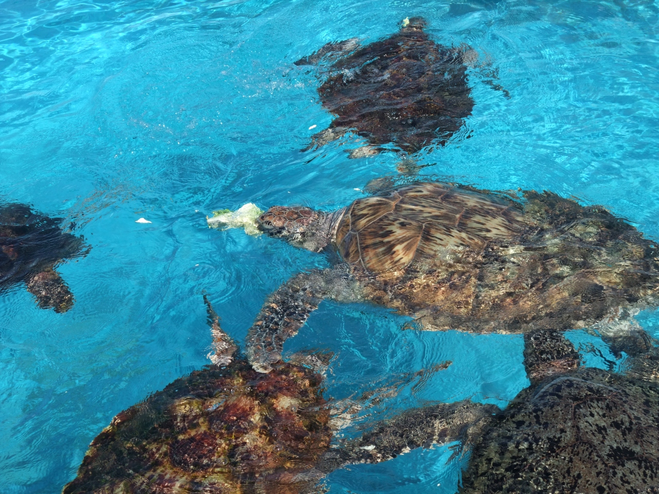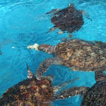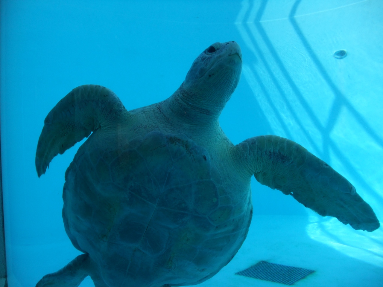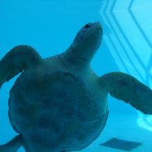 水槽の上部からと横からの両方から観ることができるので、横から見るとウミガメをより間近に観ることができます。