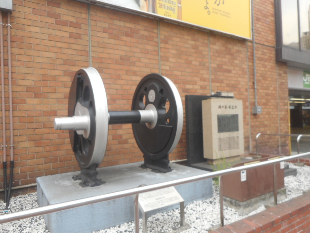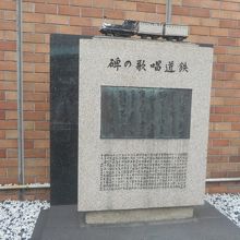 JR新橋駅の汐留口を降りて少し東京方面に歩くとこちらの鉄道唱歌の碑とD51の動輪が見えてきます。
