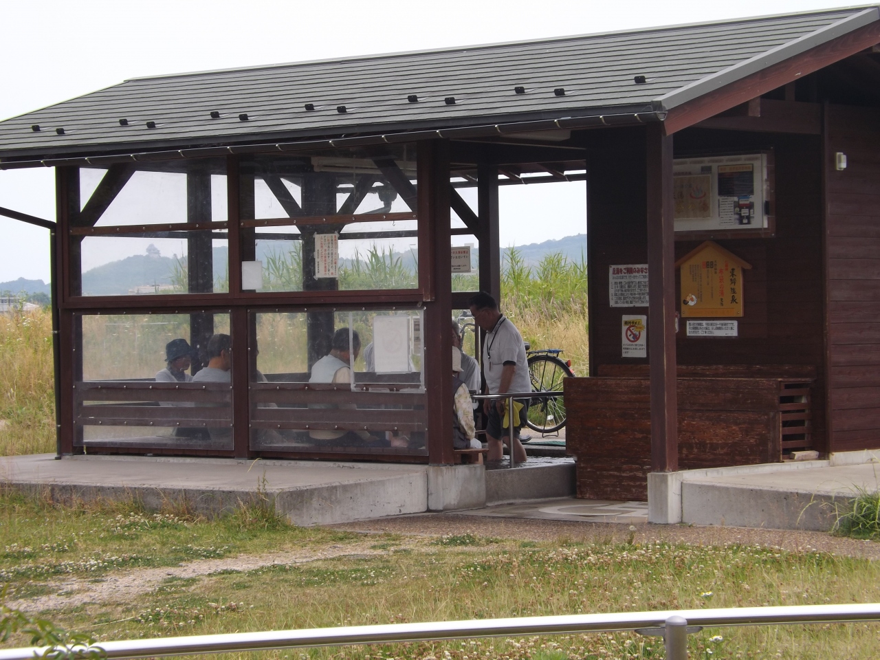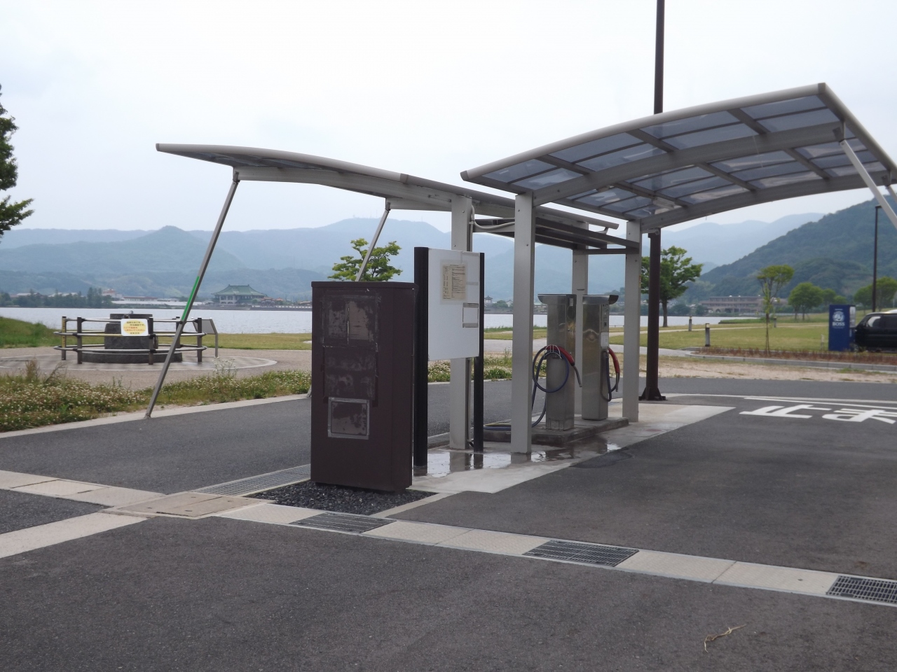 東郷湖羽合臨海公園の中にある足湯が「めぐみの湯」です。少し小さめの駐車場に車を止めてめぐみの湯まで行くと中はいっぱい。結構、人気のある足湯のようです。入れそうもないので湖畔を散策しながら東郷湖の景色を楽しみました。ここにも温泉たまごが作れる場所がありました。たくさんあるのかも?あと、温泉を持ち帰れるスタンドもありました。温泉を眺めながら足湯に浸かれば最高でしょうね。