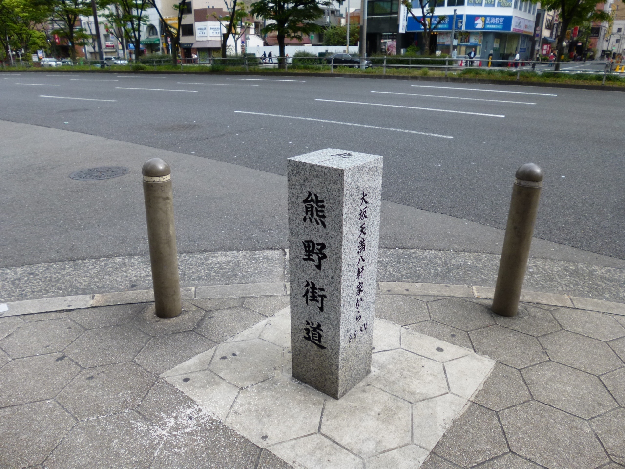谷町九丁目駅で地下鉄谷町線を降り、近隣を散策していると「熊野街道」と記した道標がありました。起点となる場所から2.9キロである事を記していました。