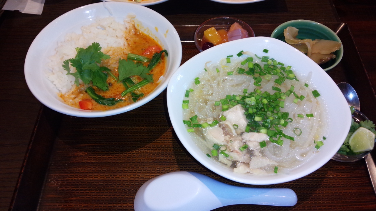 横浜みなとみらいのマークイズの4階レストラン街にある、アジアン食堂Kuuへ行って来ました。日曜で大変混みあっていましたが、10分程で入店できました。 タイやベトナム、インドネシア料理などいろいろあって楽しいです。 少しずつ味わってみたかったのでシェフのオススメ、そしてレッドカレーと鳥のフォーのハーフセット、タイ風の春雨サラダをオーダー。 シェアしていただきましたがどれも日本人好みの味で美味しかったですよ。 値段もお手頃ですし仲間といろいろオーダーしてシェアするのが楽しいと思います。またこの時期はテラス席でビアガーデンもやっていて面白そうでした。