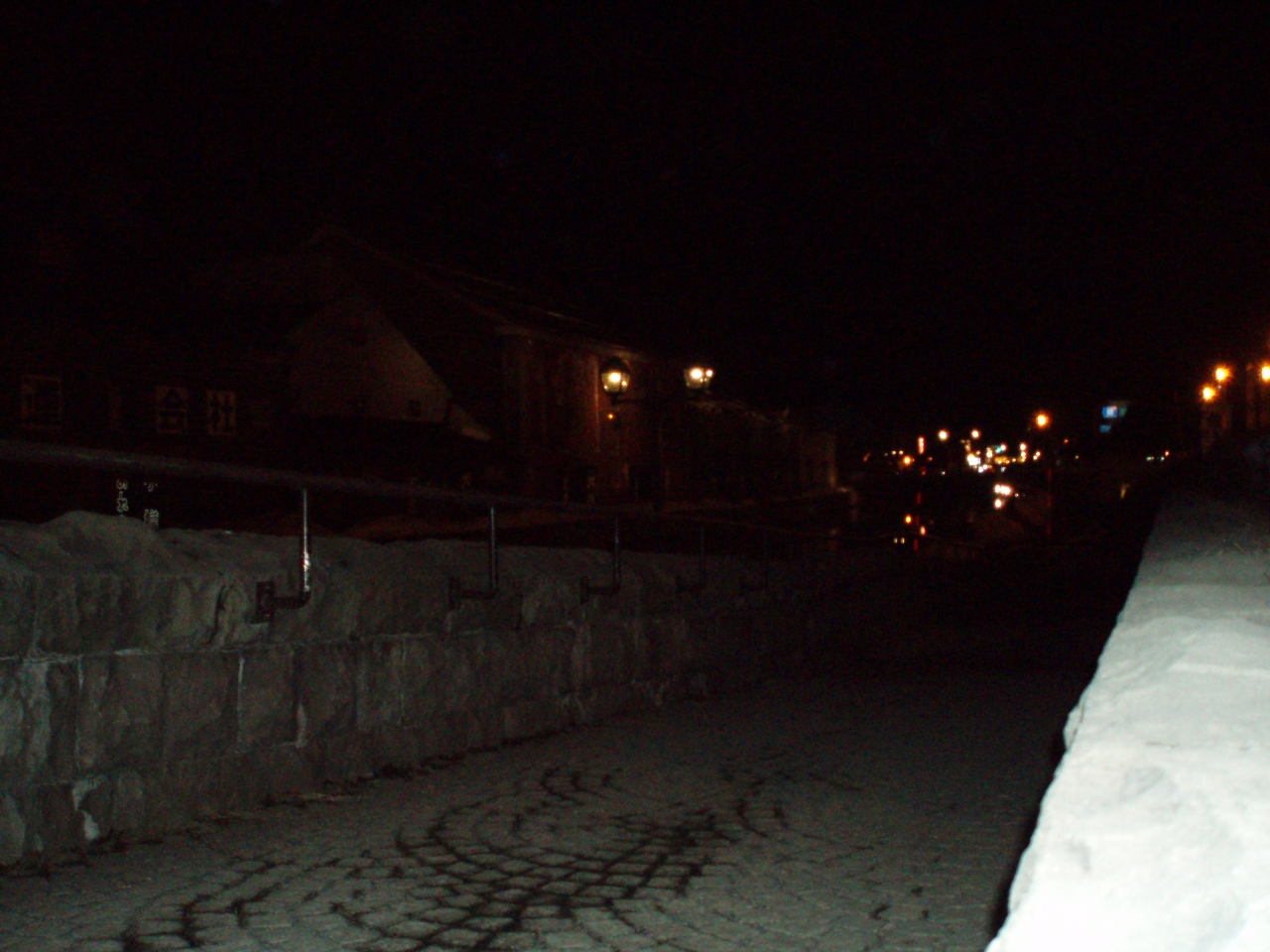 それでも小樽市指定歴史的建造物になっている運河中央海側に有って目立つ1925年(大正14年)築の旧篠田倉庫は煉瓦造り2階建ての為「ぼ~」っと目立って薄明るくライトに照らされて浮かんでるようでした。