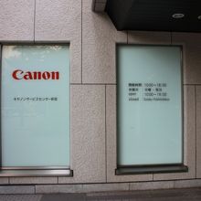 レンガ色のビルの谷間の55HIROBAの横にあり最近カメラ女子の登場により高級一眼レフやミラーレスなどデジタルカメラが人気のキャノンここにはコンシェルジュがいてちょっと触れてみたい時や教えてもらいたい時ににはとても最適なサービスセンターです。