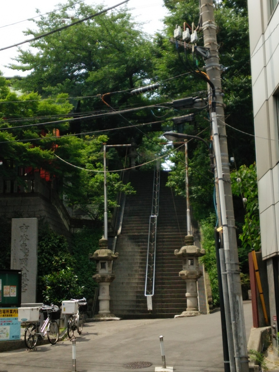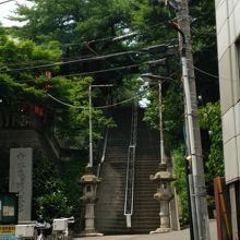 市ヶ谷駅から徒歩5分程度の外堀通りから少し入ったところにあります。急な階段を上ったところに境内があります。この神社は太田道灌が江戸城築城の際に西方の守護神として鎌倉の鶴岡八幡宮の分霊を祀ったのが始まりのようで名前の由来も「鶴岡」に対して亀岡八幡宮と称したようです。