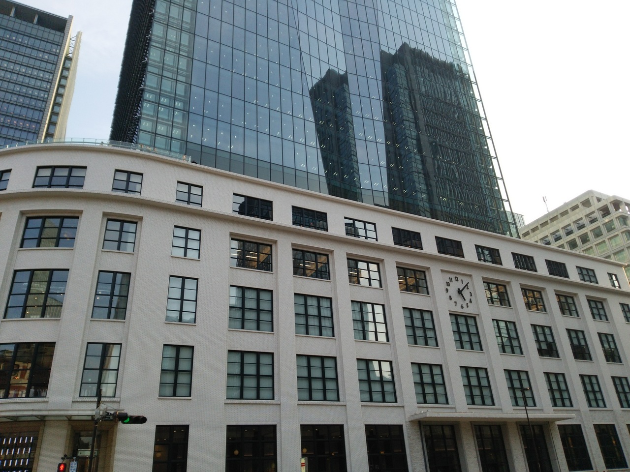 東京駅丸の内口を出たところにある商業複合施設KITTEの1階にあります。東京中央郵便局というだけあって大きな郵便局です。kITTEを建設する際、郵便局の外観は残したこともあり、古い建物の上に近代的な建物がのった感じの建物です。