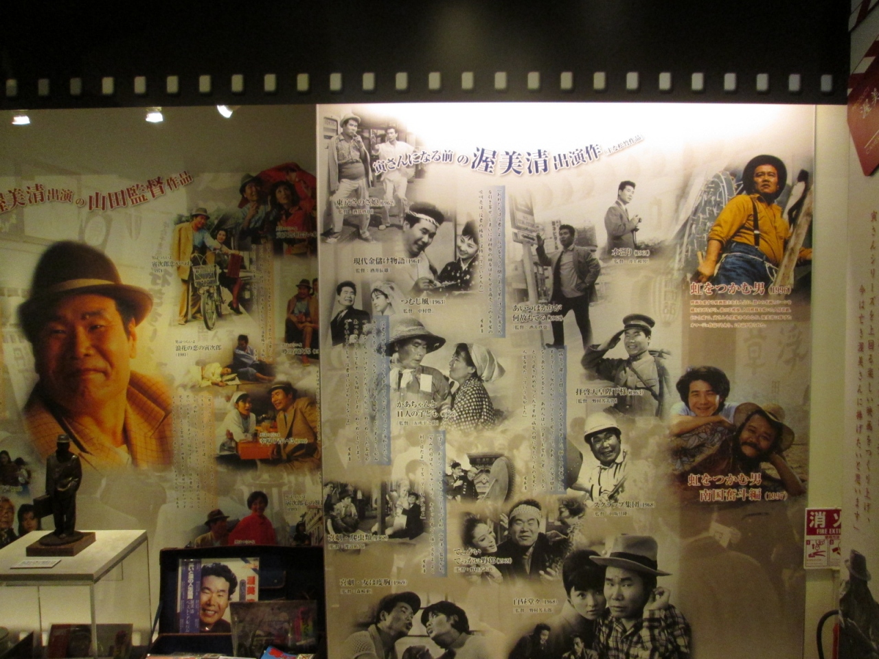 山田洋二監督が手掛けた、たくさんの映画の写真が、時代ごとに展示されていました。渥美清さん関連の映画もたくさん撮影されていたんですね。渥美清さんは”寅さん”だけではない・・・ということに少しビックリ。白黒映画もありましたので、山田洋二監督と渥美清さんの親交は、かなり古くからあったのですね。懐かしさが込み上げてくるミュージアムです。