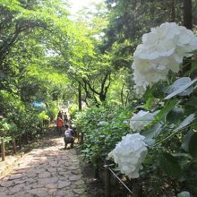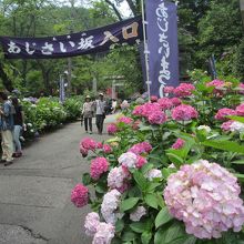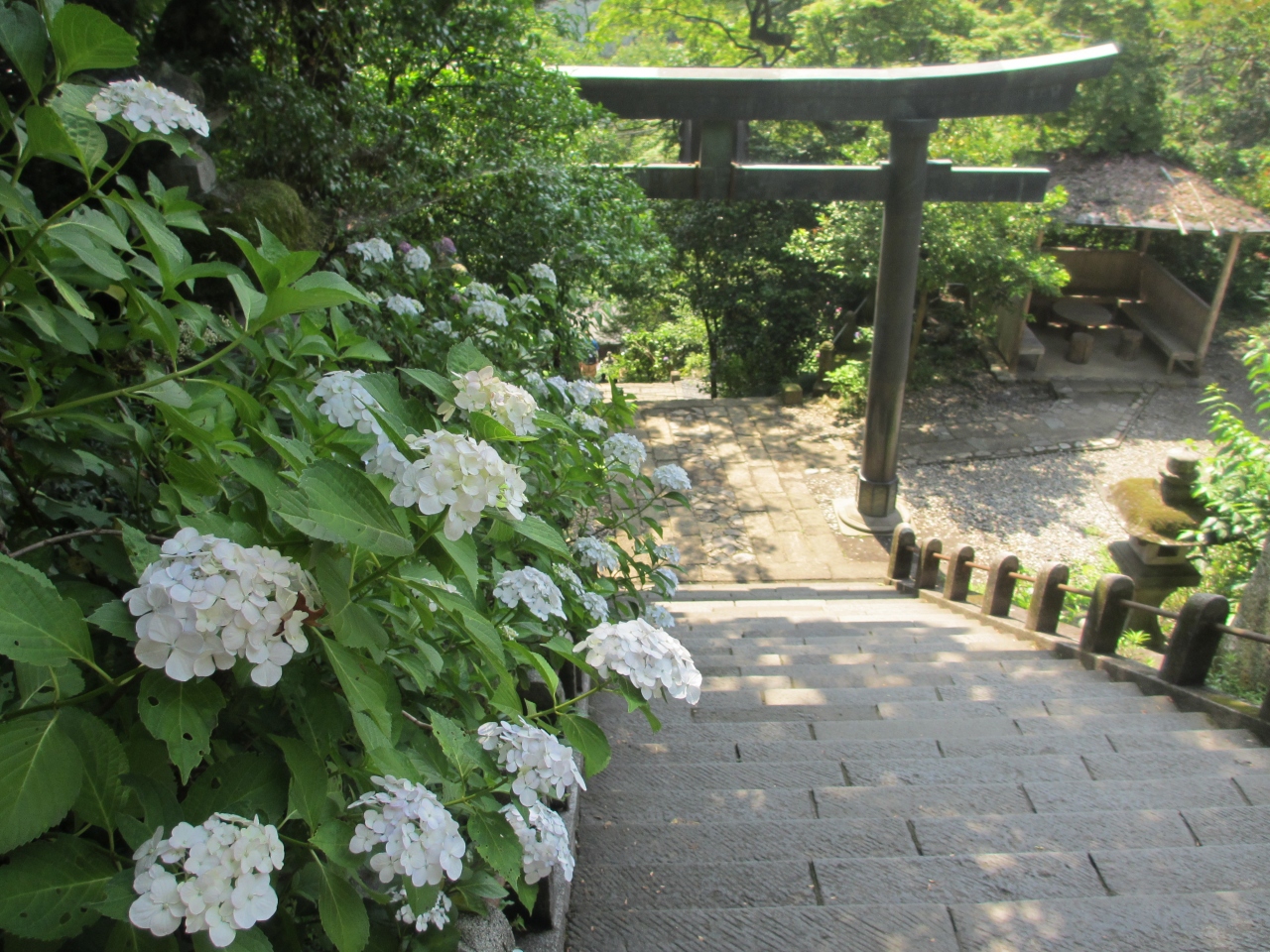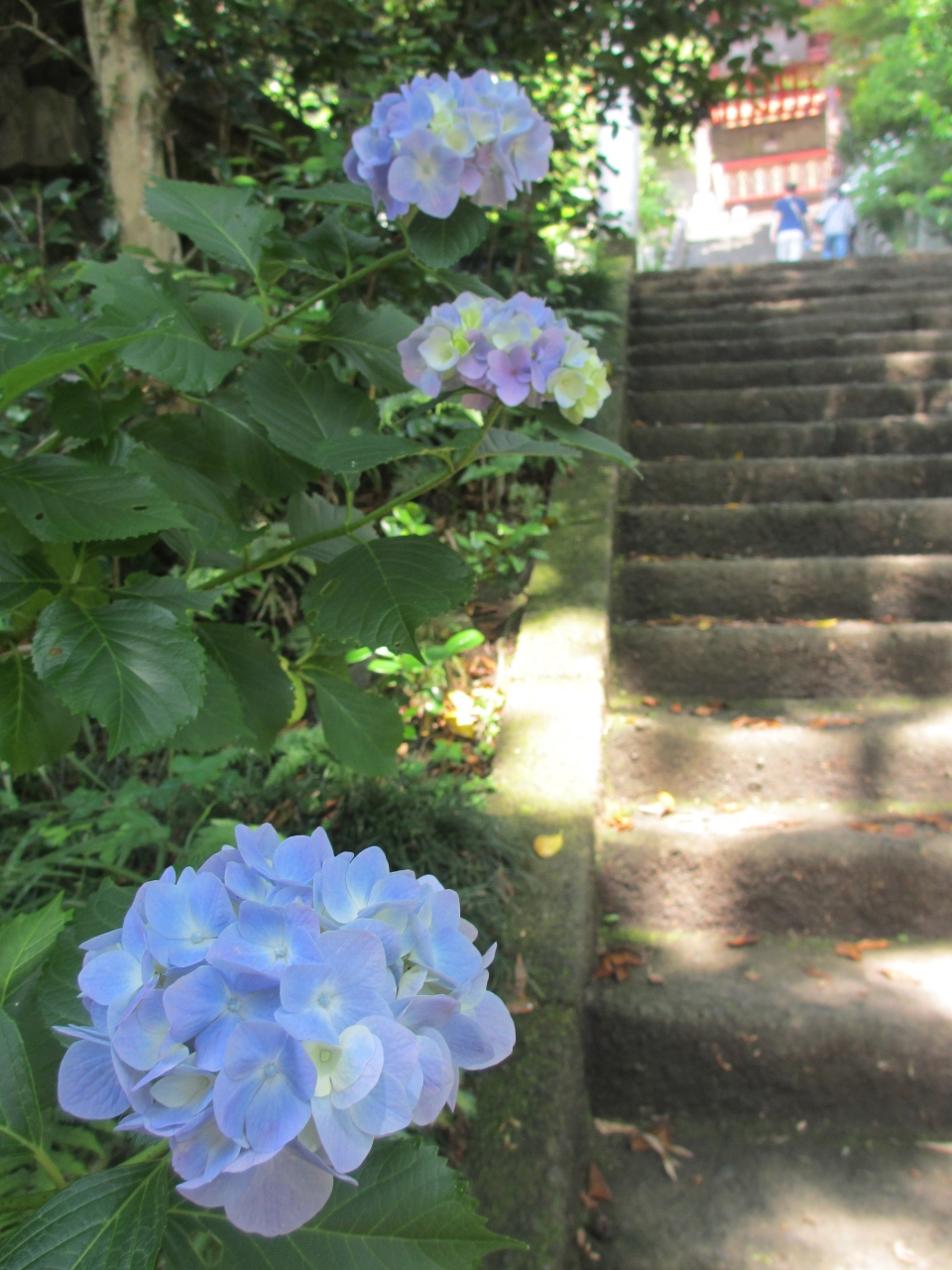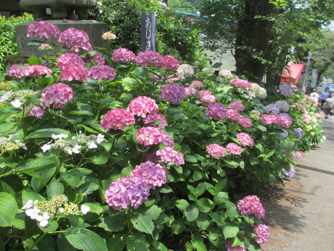 アジサイ祭りの初日にあじさい観賞に行ってきました。太平山の入口にあるあじさい坂から一番上にある太平山神社までは1000段以上の階段を上らなければなりません。坂の両側には色とりどりのアジサイがきれいに咲き、疲れを癒してくれました。途中には六角堂、パワースポットの銭洗弁財天、御神木などがあります。神社近くの階段は急なため、上り切った時には汗びっしょりになっていました。帰路は謙信平方向へ向かい、なだらかな坂と階段を降りてきました。途中、いづみ屋さんが育てているあじさいを観賞しました。あじさい坂以上に美しく咲いているあじさいには感動でした。なおあじさい坂近くにある駐車場は大変込み合います。早めの到着が望まれます。